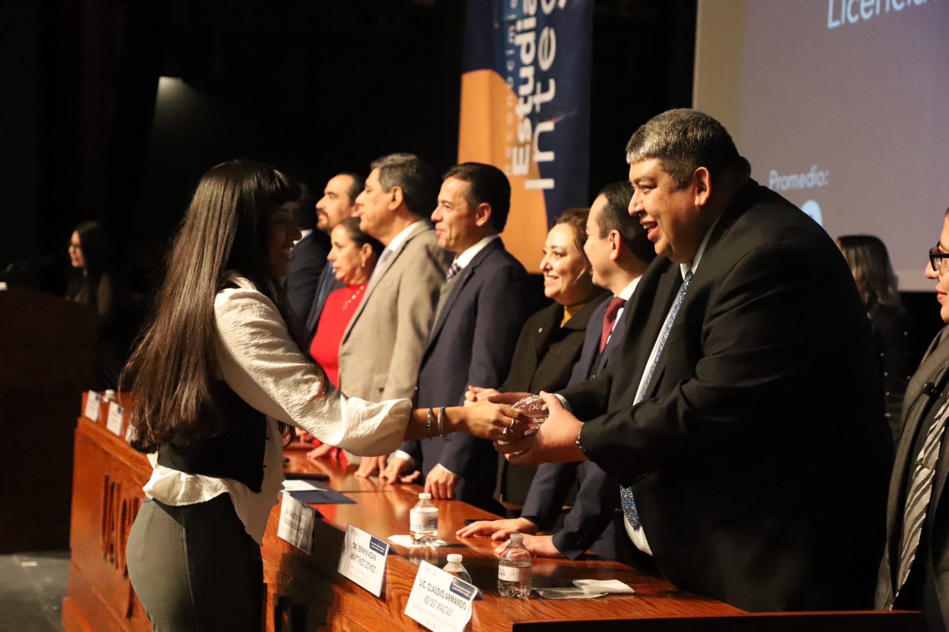 No era una función o evento habitual protocolario; el escenario estaba listo para celebrar no a artistas, sino a los verdaderos protagonistas de esta universidad: Los estudiantes destacados e integrales del semestre enero-junio de 2025.