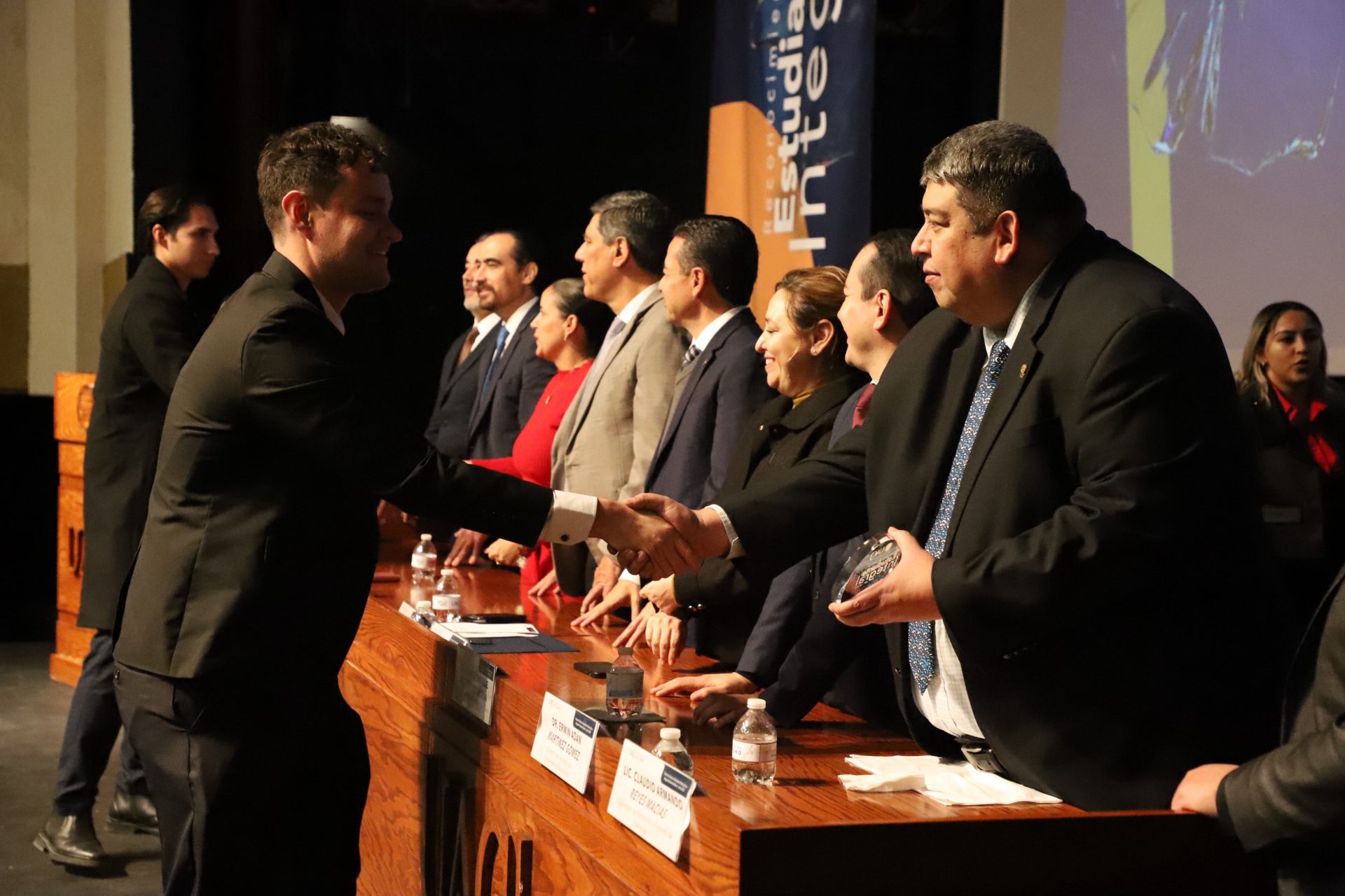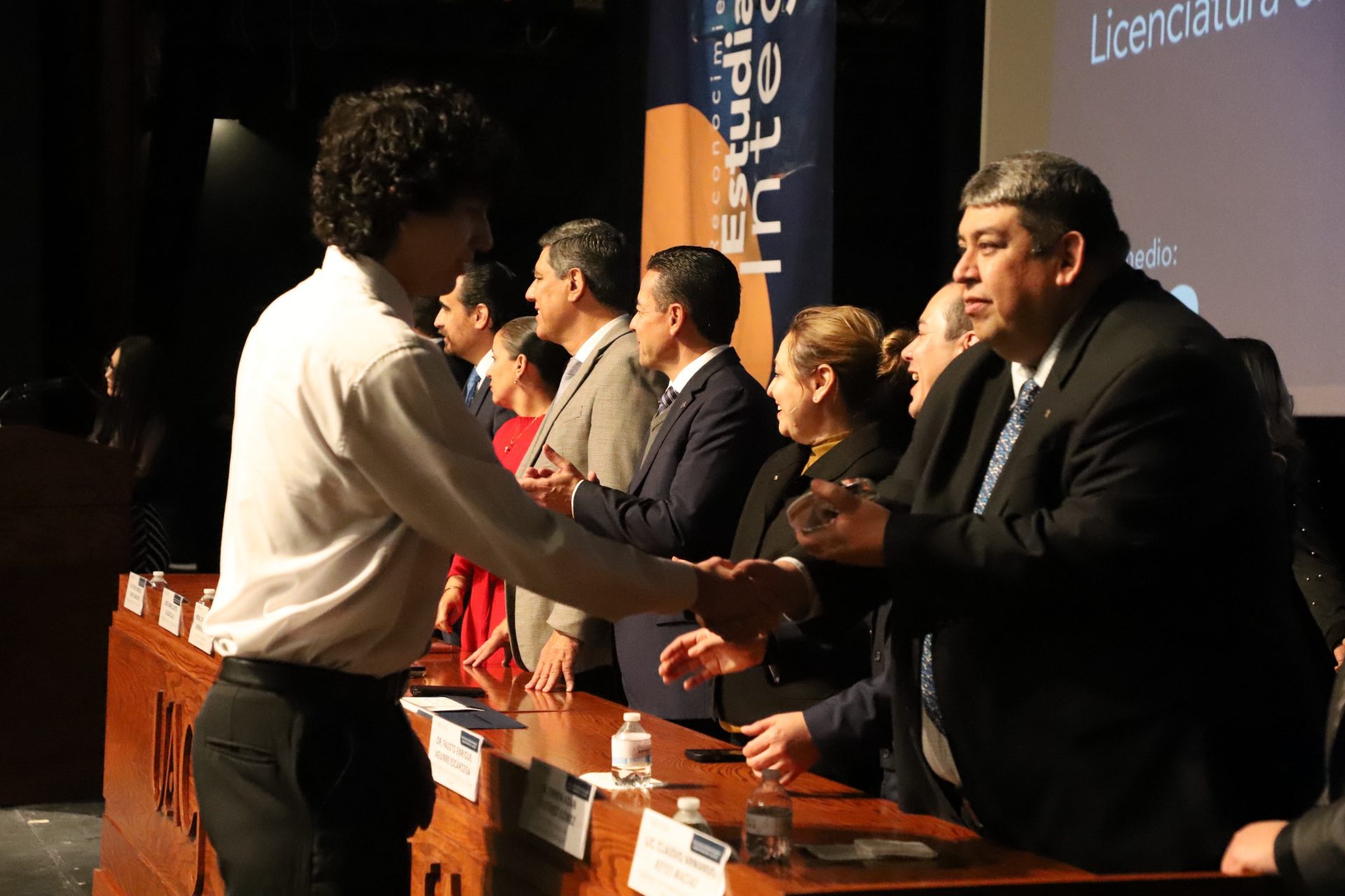 La velada no terminó ahí. La explanada del teatro se transformó en un espacio de convivencia. Mientras el Mariachi seguía ambientando la tarde-noche, las pantallas del lobby exhibían las evidencias de los proyectos de los estudiantes integrales. Familias, amigos y autoridades compartieron un ambigú, conversaron, se tomaron fotos. Eran ya no reconocidos y reconocedores, sino una sola comunidad universitaria celebrando juntos.