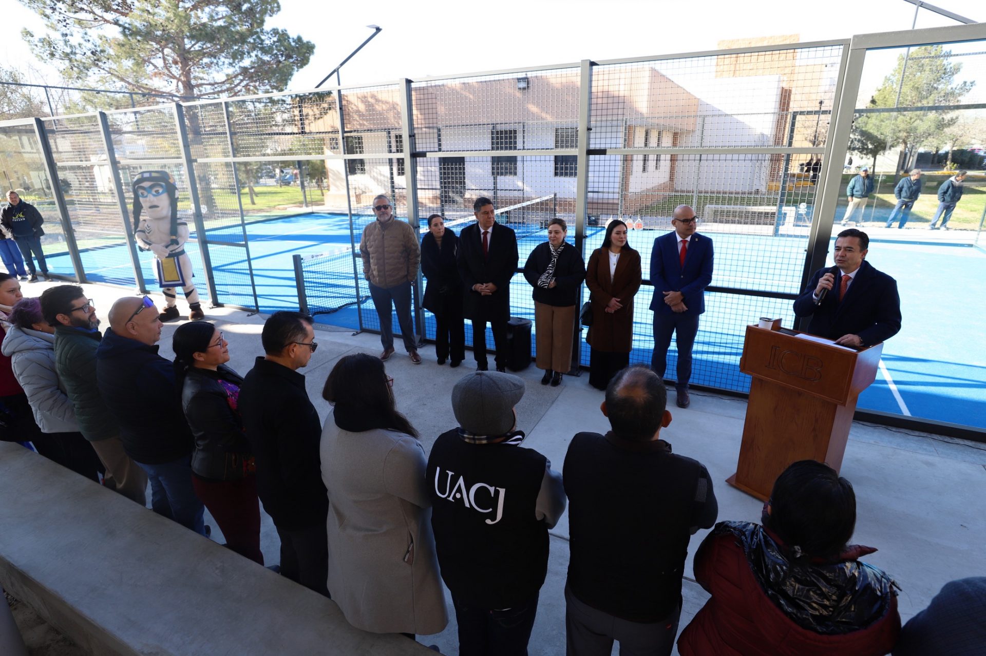 A través de una ceremonia llevada a cabo por autoridades de la Universidad Autónoma de Ciudad Juárez (UACJ), se inauguró la nueva cancha de pádel en el Instituto de Ciencias Biomédicas (ICB), un proyecto institucional que se ha desarrollado en los cuatro campus norte, diseñado para enriquecer la vida extracurricular y el bienestar de toda la comunidad universitaria