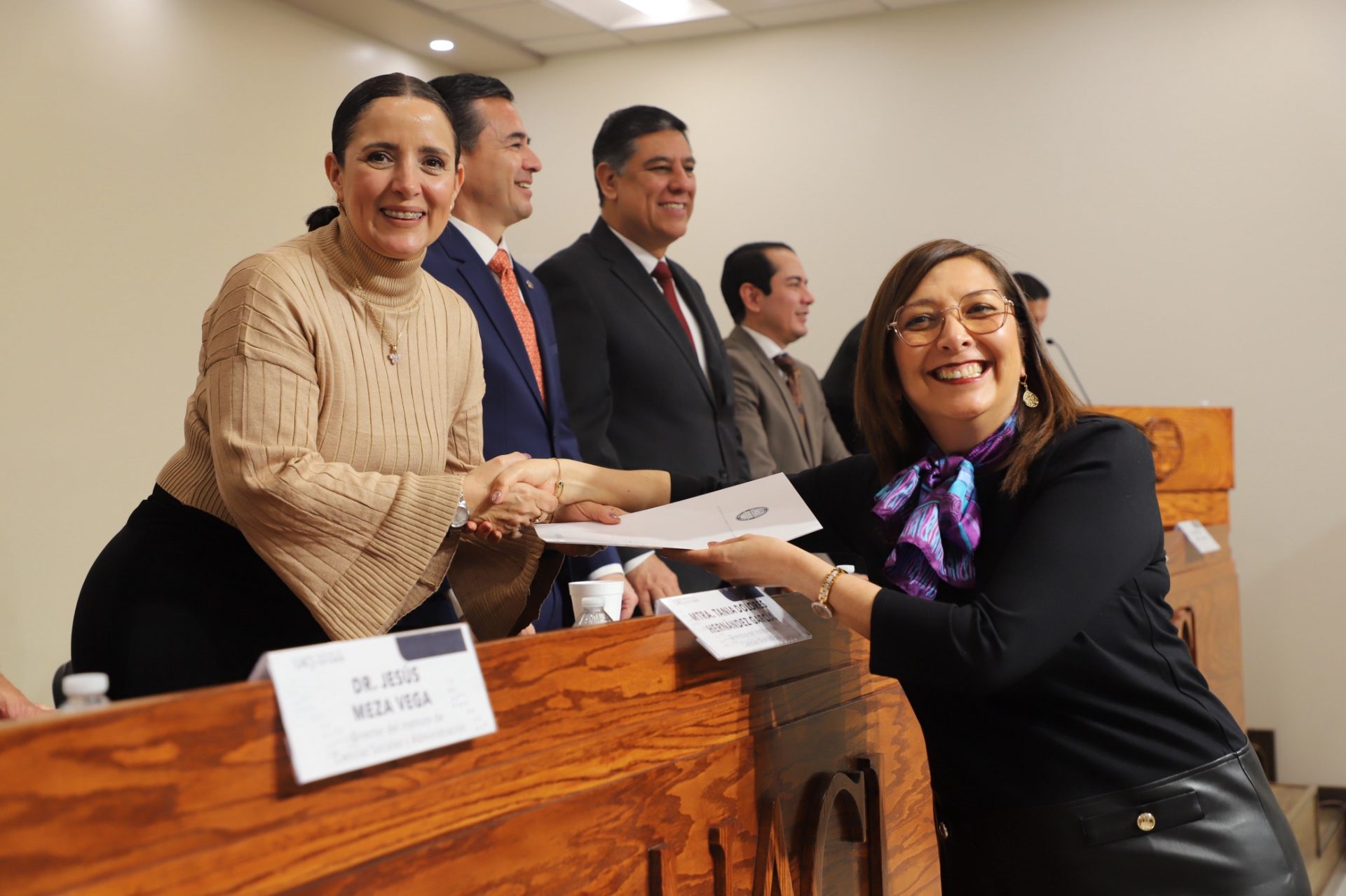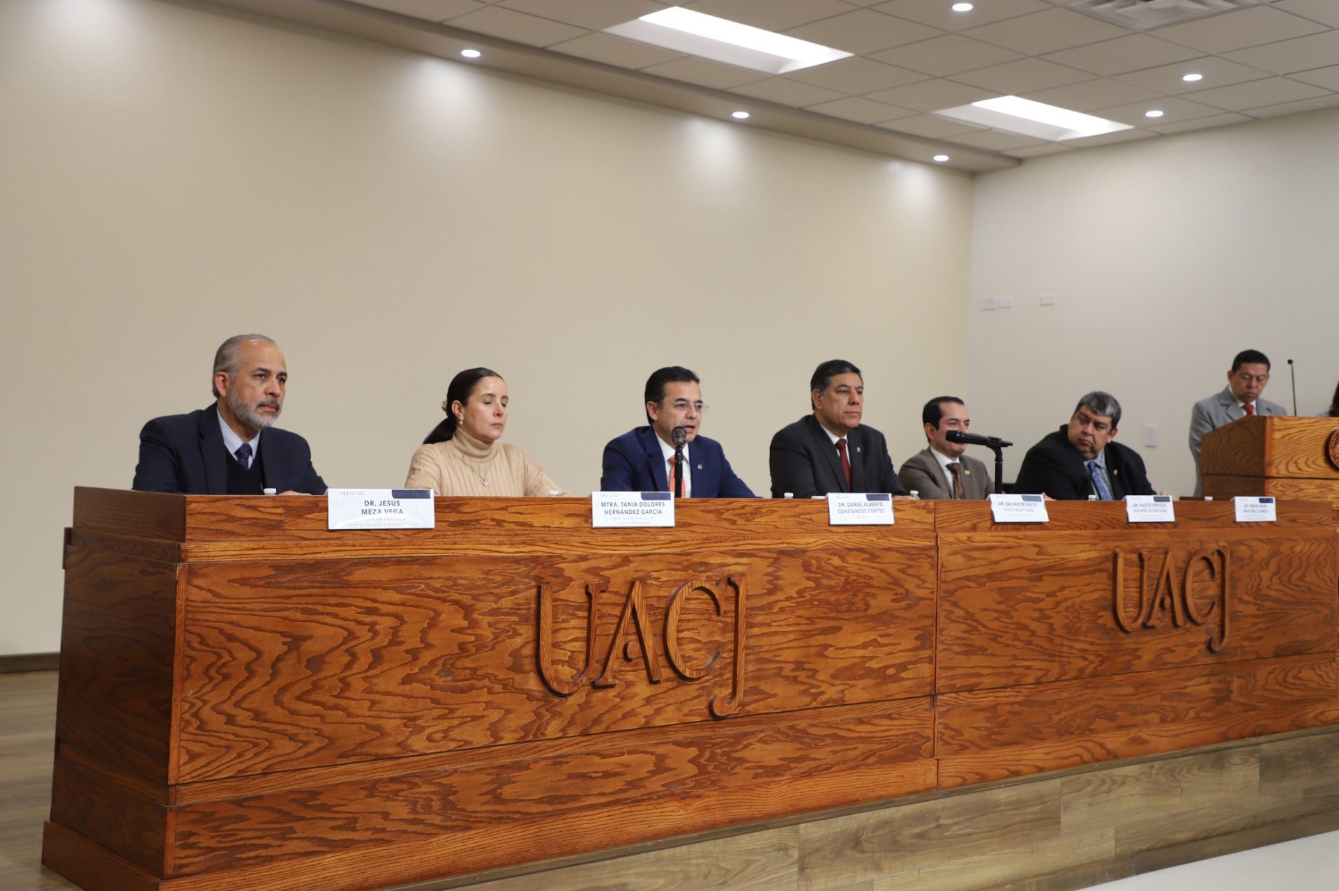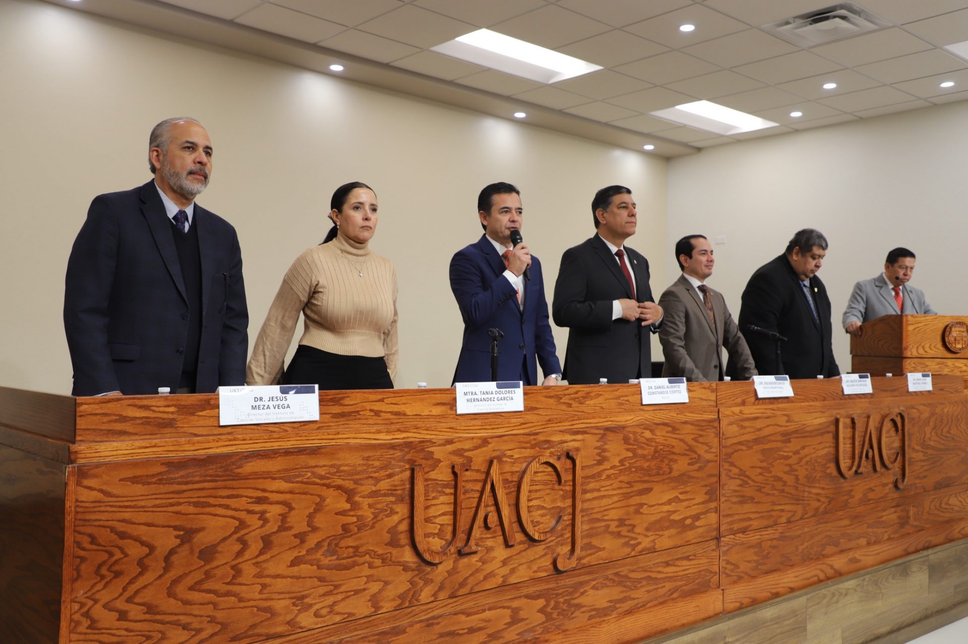 Al evento se dieron cita el doctor Daniel Alberto Constandse Cortez, rector de la UACJ; el doctor Salvador David Nava Martínez, secretario general; la maestra María Guadalupe Gaytán Aguirre, secretaria académica; el doctor Fausto Enrique Aguirre Escárcega, director del Instituto de Arquitectura, Diseño y Arte (IADA); la maestra Tania Dolores Hernández García, directora del Instituto de Ciencias Biomédicas (ICB); el doctor Jesús Meza Vega, director del Instituto de Ciencias Sociales y Administración (ICB); el doctor Erwin Adán Martínez Gómez, director del Instituto de Ingeniería y Tecnología (IIT).