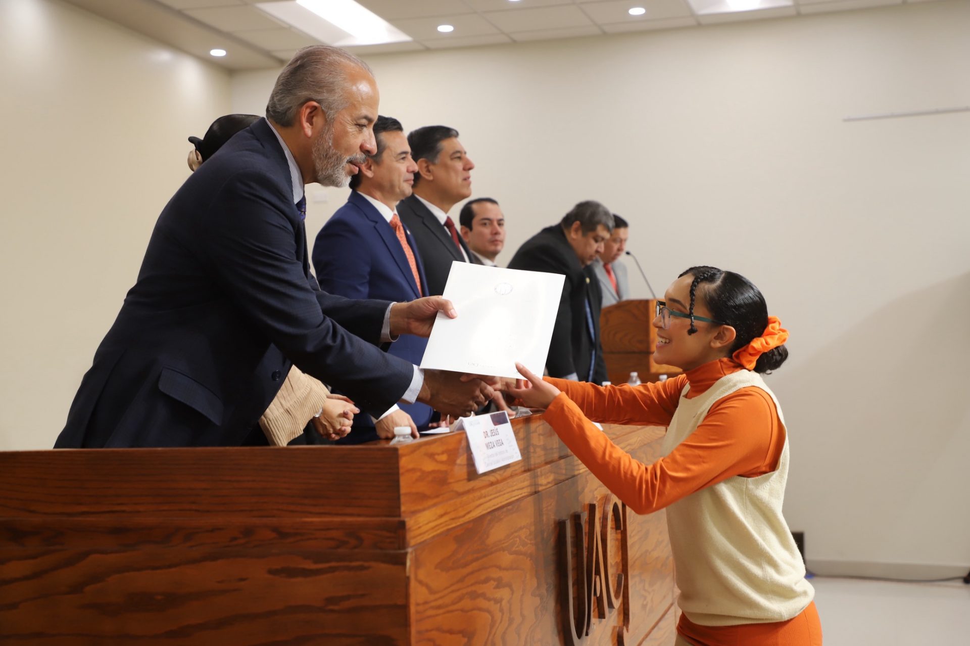 “Quiero felicitarlos por el resultado de haber sido electos. Cada voto obtenido es la muestra de que sus compañeras, compañeros de los institutos, docentes y alumnos confían en ustedes y en sus capacidades, así que les doy la más cordial bienvenida como miembros del Honorable Consejo Universitario. Al rendir protesta, asumen, también, una responsabilidad de trascendencia para la vida institucional, representar a la comunidad universitaria con integridad, participar con rigor en la deliberación y toma de decisiones colegiada, siempre en interés superior de la Universidad”, reflexionó el doctor Daniel Alberto Constandse Cortez, rector de la UACJ.
