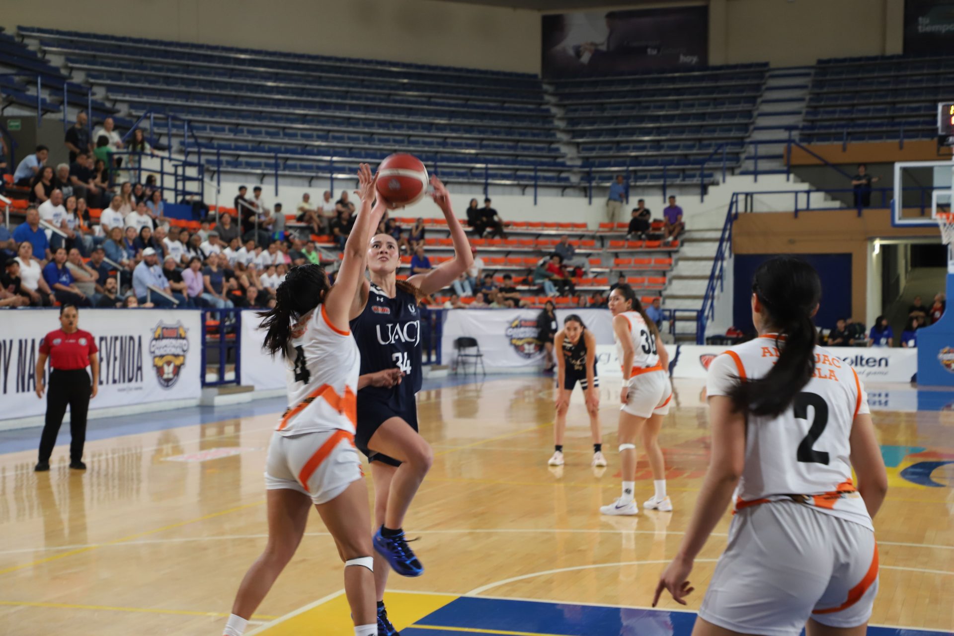 El Gimnasio Universitario de la Universidad Autónoma de Ciudad Juárez (UACJ) vivió un gran ambiente del público local, que no dejó de apoyar en todo momento durante el encuentro lleno de emociones, estrategias y jugadas.