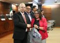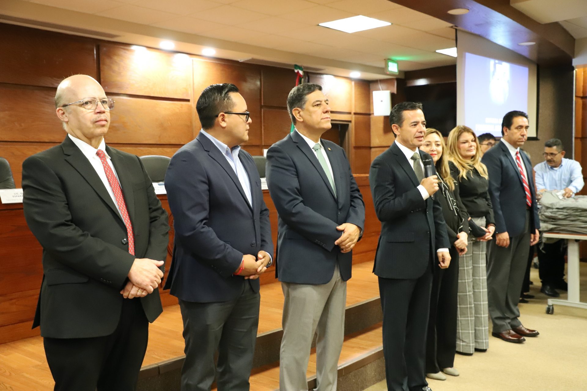 En el presídium se contó con la asistencia de la doctora Blanca Lidia Márquez Miramontes, subdirectora de Recursos Humanos; el licenciado Gilberto Esparza Ambriz, secretario general del Sindicato de Trabajadores Administrativos de la UACJ (STAUACJ); del doctor René Javier Soto Cavazos, abogado general; del maestro Gerardo Sandoval Montes, director general de Servicios Administrativos; la maestra María Guadalupe Gaytán Aguirre, secretaria académica; el doctor Salvador David Nava Martínez, secretario general y el doctor Daniel Alberto Constandse Cortez, rector.