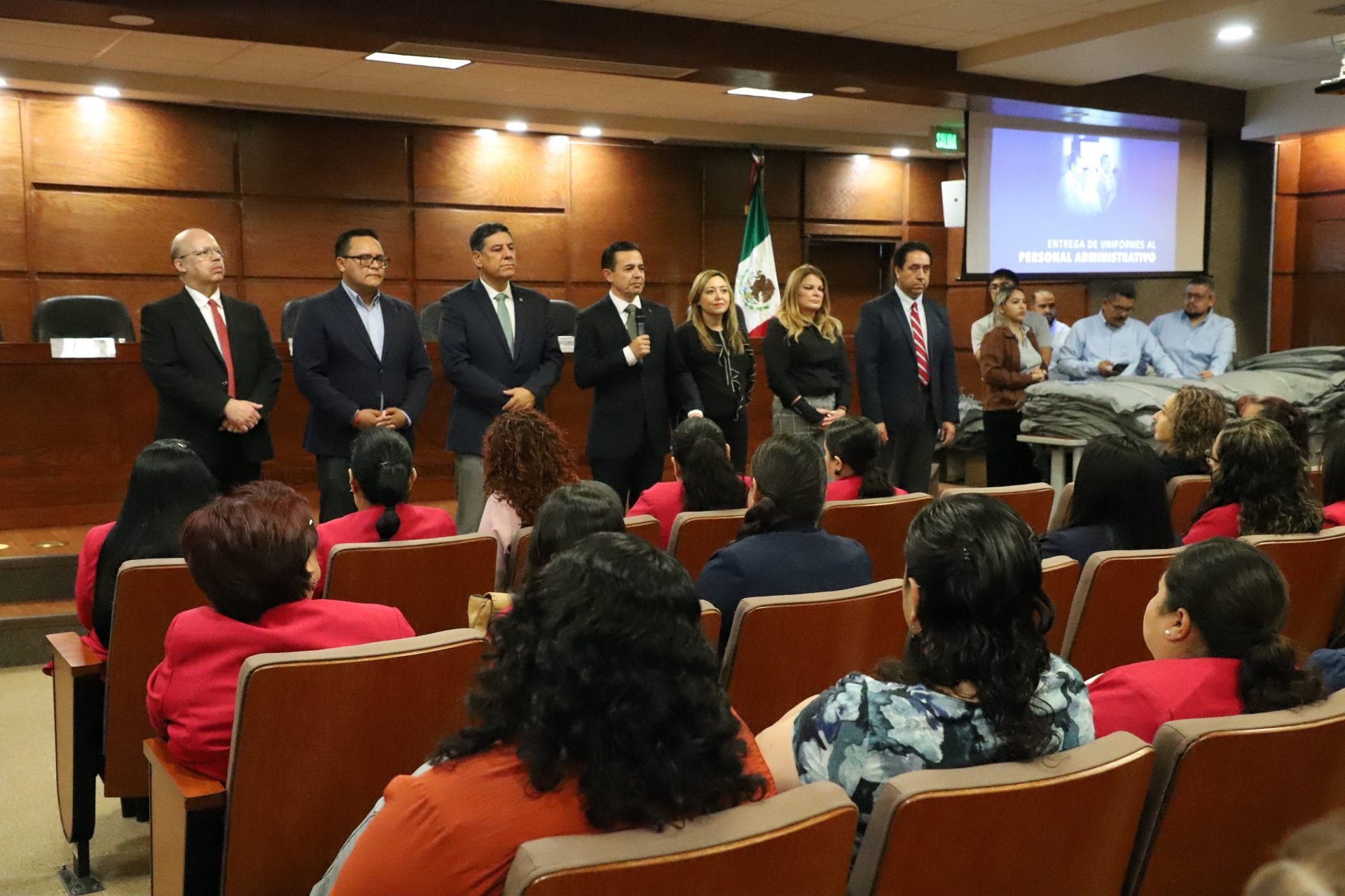 La Universidad Autónoma de Ciudad Juárez entregó 360 uniformes al personal administrativo, con el propósito de cumplir con una de las cláusulas del contrato colectivo de trabajo que esta casa de estudios celebra con el Sindicato de Trabajadores Administrativos de la UACJ. Lo cual permite que todos los colaboradores cuenten con la indumentaria adecuada para el desempeño de sus funciones, promoviendo la identidad, la imagen institucional, la seguridad laboral y la uniformidad del equipo de trabajo, de acuerdo con los estándares establecidos.