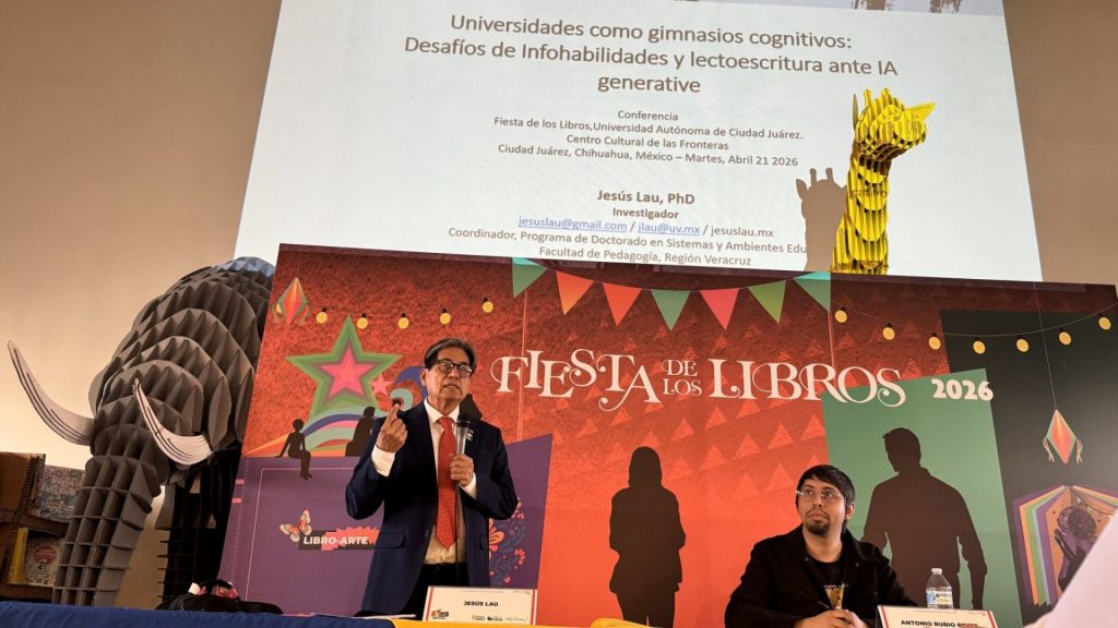 Como parte de la 14ª edición de la Fiesta de los Libros de la Universidad Autónoma de Ciudad Juárez (UACJ), este miércoles 22 de abril se llevó a cabo la conferencia Universidades como gimnasios cognitivos: Desafíos de infohabilidades y lectoescritura ante IA Generativa, un espacio de reflexión sobre el papel de la educación superior frente a los cambios que impone la tecnología.