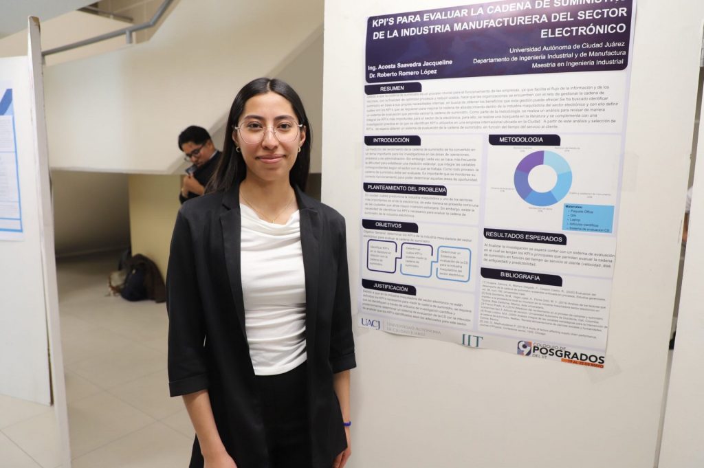 Una de las participantes fue la Mtra. Arlette Rebeca Salas Esquivel, ingeniera industrial con maestría en Manufactura Esbelta y actualmente estudiante del Doctorado en Tecnología. Su investigación propone un algoritmo multicriterio para la optimización del balanceo de líneas de producción, una necesidad detectada a partir de su experiencia laboral en la industria manufacturera.