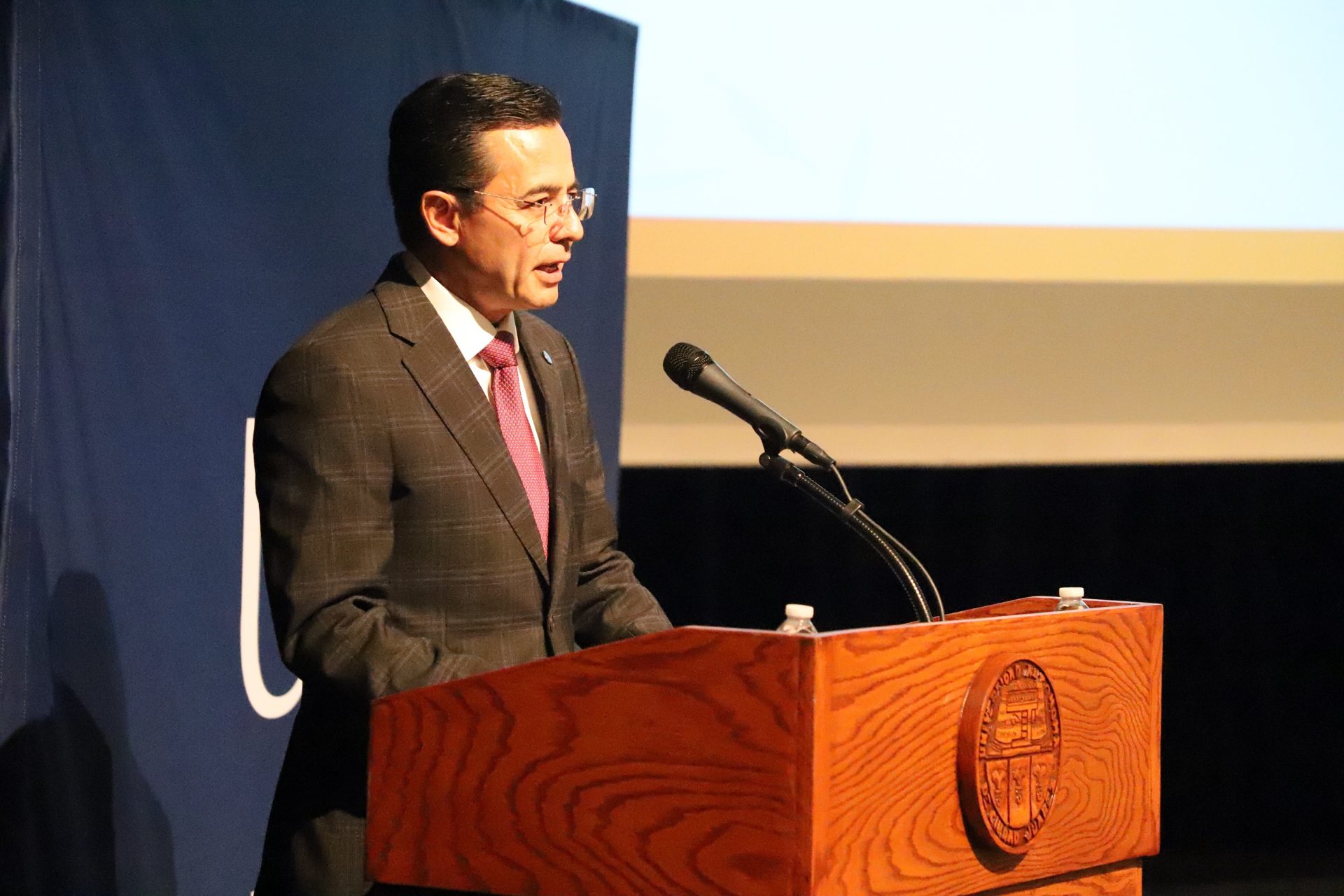 En el presídium se contó con la asistencia del doctor Carlos R. Cabrera Martínez, profesor y director del Departamento de Química y Bioquímica de la Universidad de Texas en El Paso (UTEP); la maestra Kathya Yazmín Sánchez Pérez, directora general de Vinculación, Intercambio y Responsabilidad Social; la maestra María Guadalupe Gaytán Aguirre, secretaria académica; el doctor Salvador David Nava Martínez, secretario general y el doctor Daniel Alberto Constandse Cortez, Rector.