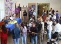 El maestro Alejandro Castillo González, director general de Difusión Cultural y Divulgación Científica; maestro Carlos Ortiz Villegas, representante del Gobierno de Chihuahua en Ciudad Juárez; maestro Luis Fernando Rodríguez, director de Centros Comunitarios del Municipio de Ciudad Juárez; maestra Brenda Rodríguez, subsecretaria de Cultura zona norte; licenciada Austria Galindo Rodríguez, subsecretaria de Desarrollo Humano y Bien Común; licenciado Miguel Ángel Mendoza Rangel, coordinador de Cultura de los Centros Comunitarios; y la maestra María Victoria Ibarra Segura, subdirectora de Formación Cultural.