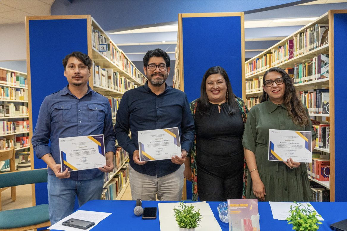 El último de los eventos literarios se vivió con la presentación del libro “Volver al diálogo: Cartas sobre precariedad, globalización y otredad en un mundo en ruinas”, con la participación de la doctora Sofía Corral Soto, el maestro Víctor Alonso Chaparro Sánchez y el doctor Alfonso Herrera Robles, profesores que forman parte del Centro de Investigaciones Sociales (CIS) de la UACJ.