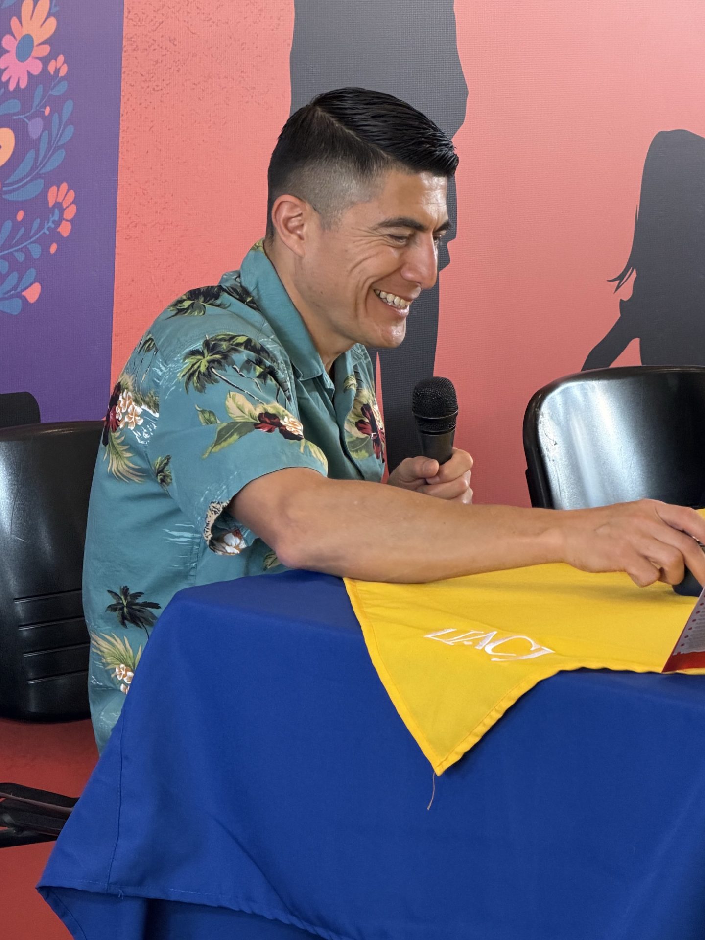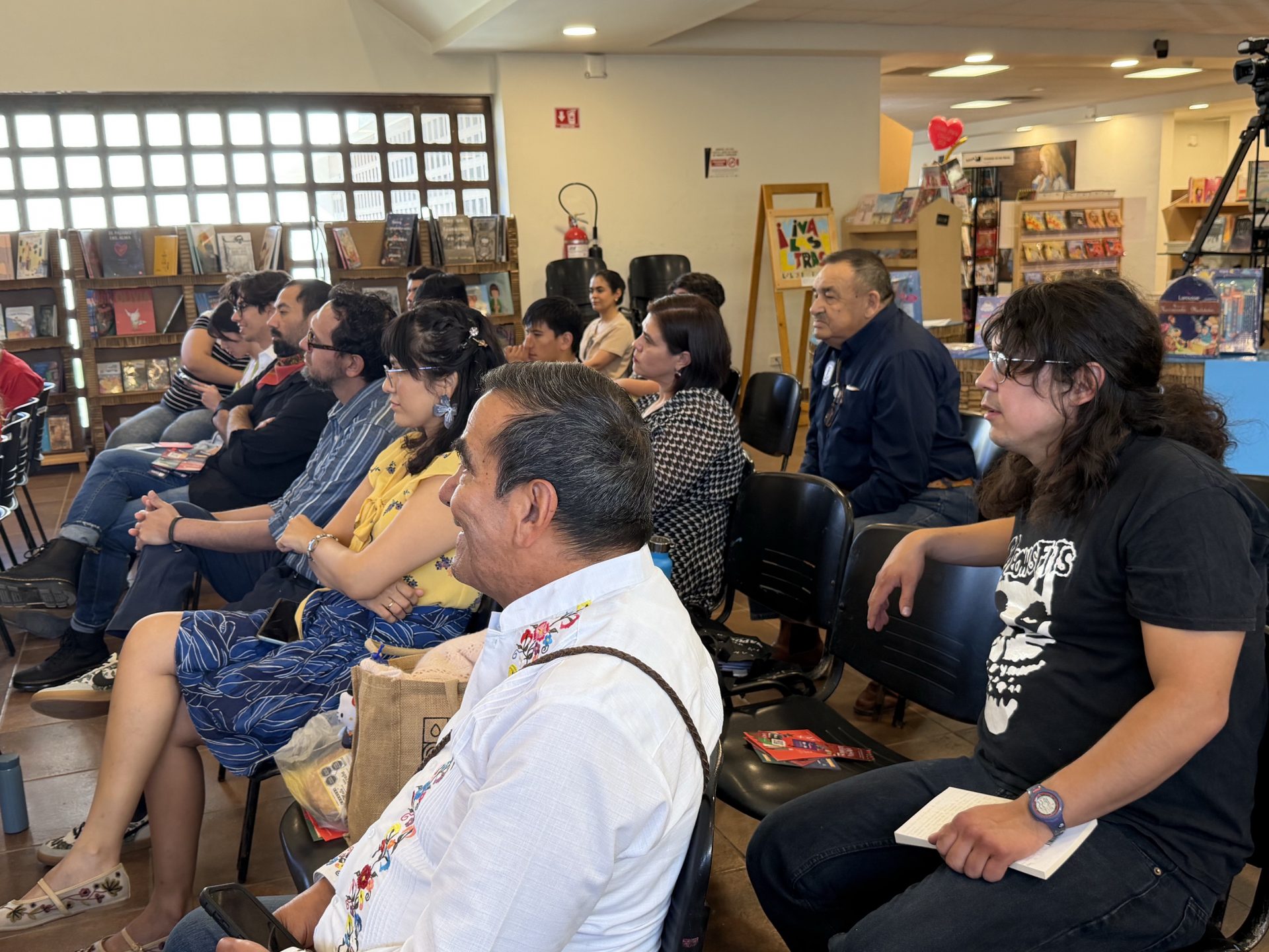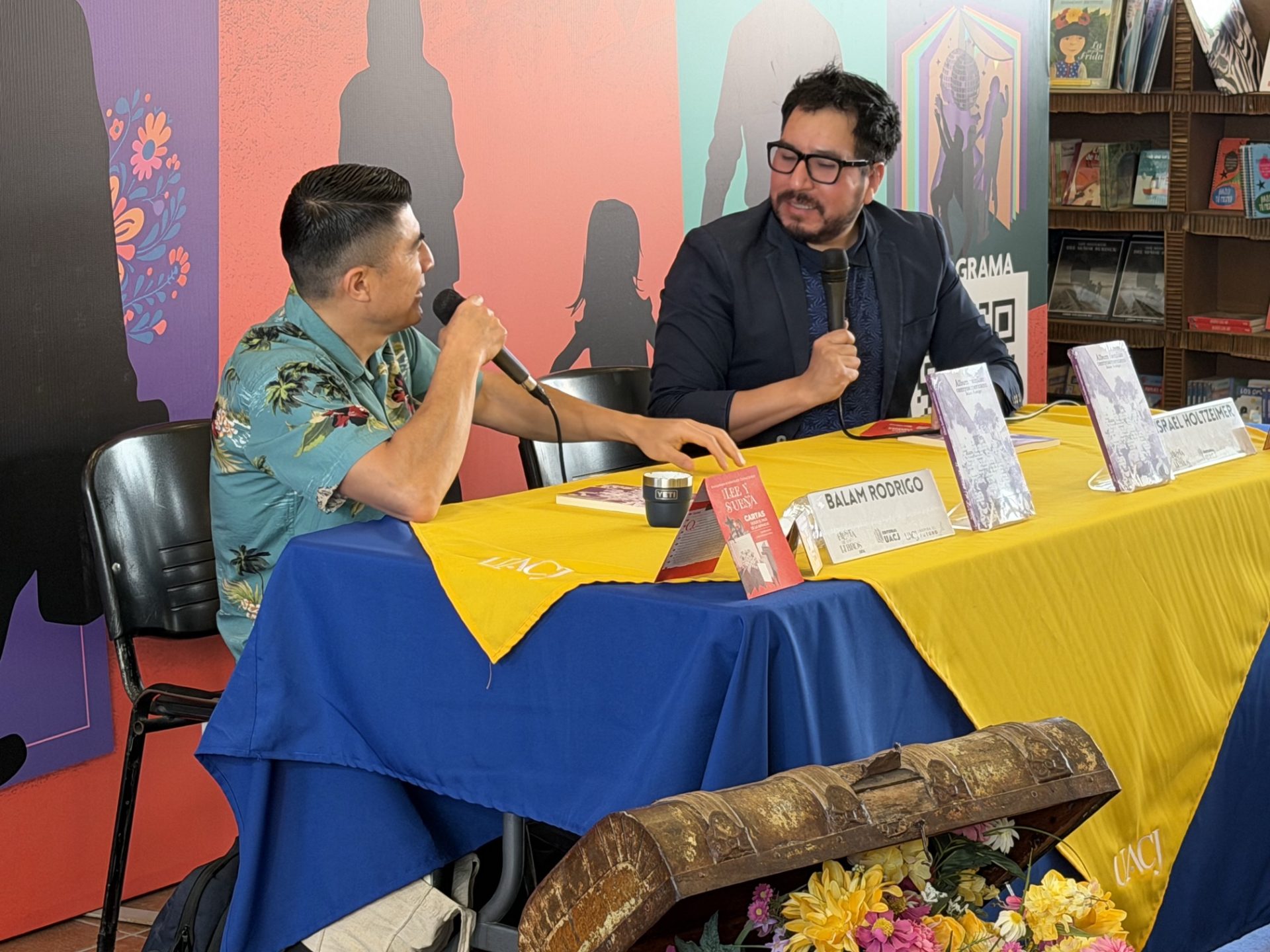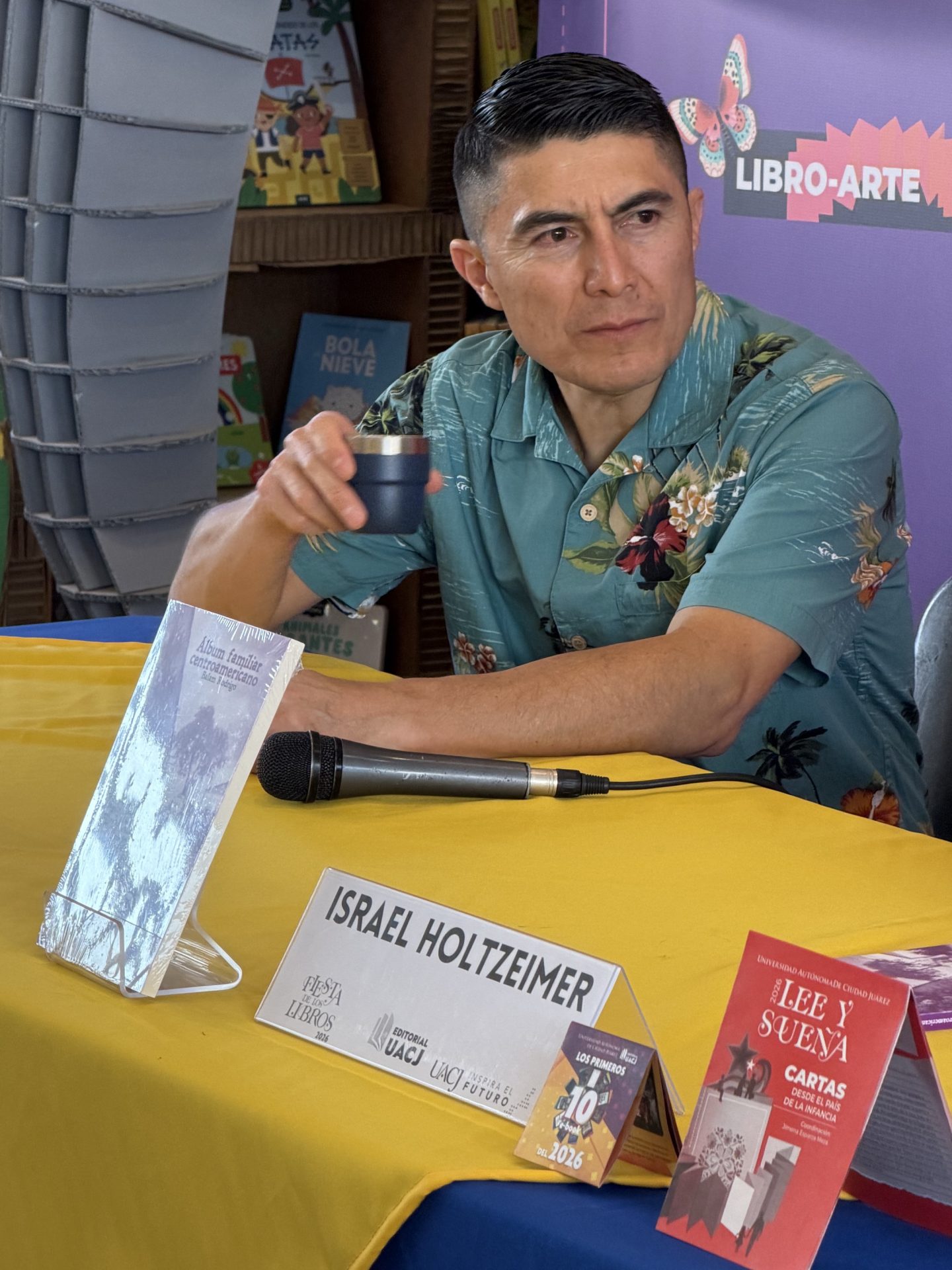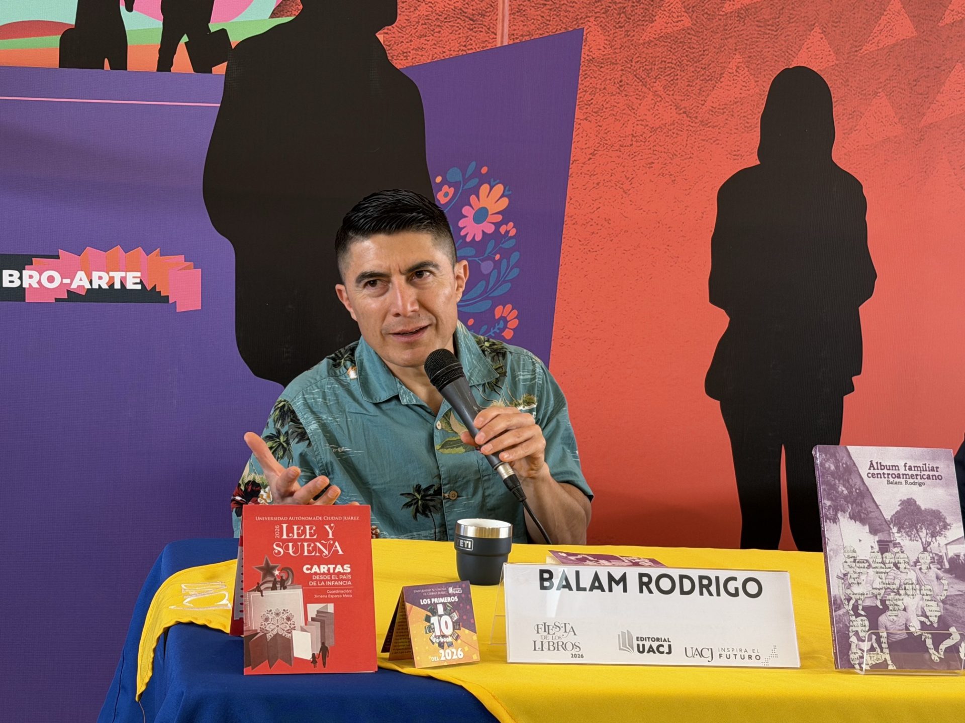 “Estoy contento de estar en la Fiesta de los Libros organizada por la UACJ en esta edición 2026, soy originario de Chiapas, radico en San Cristóbal de las Casas y desde allá traje mi tambache de libros y de palabras, y un taller que tiene que ver con la poesía y el futbol; además voy a presentar un par de libros”, se presentó el autor.