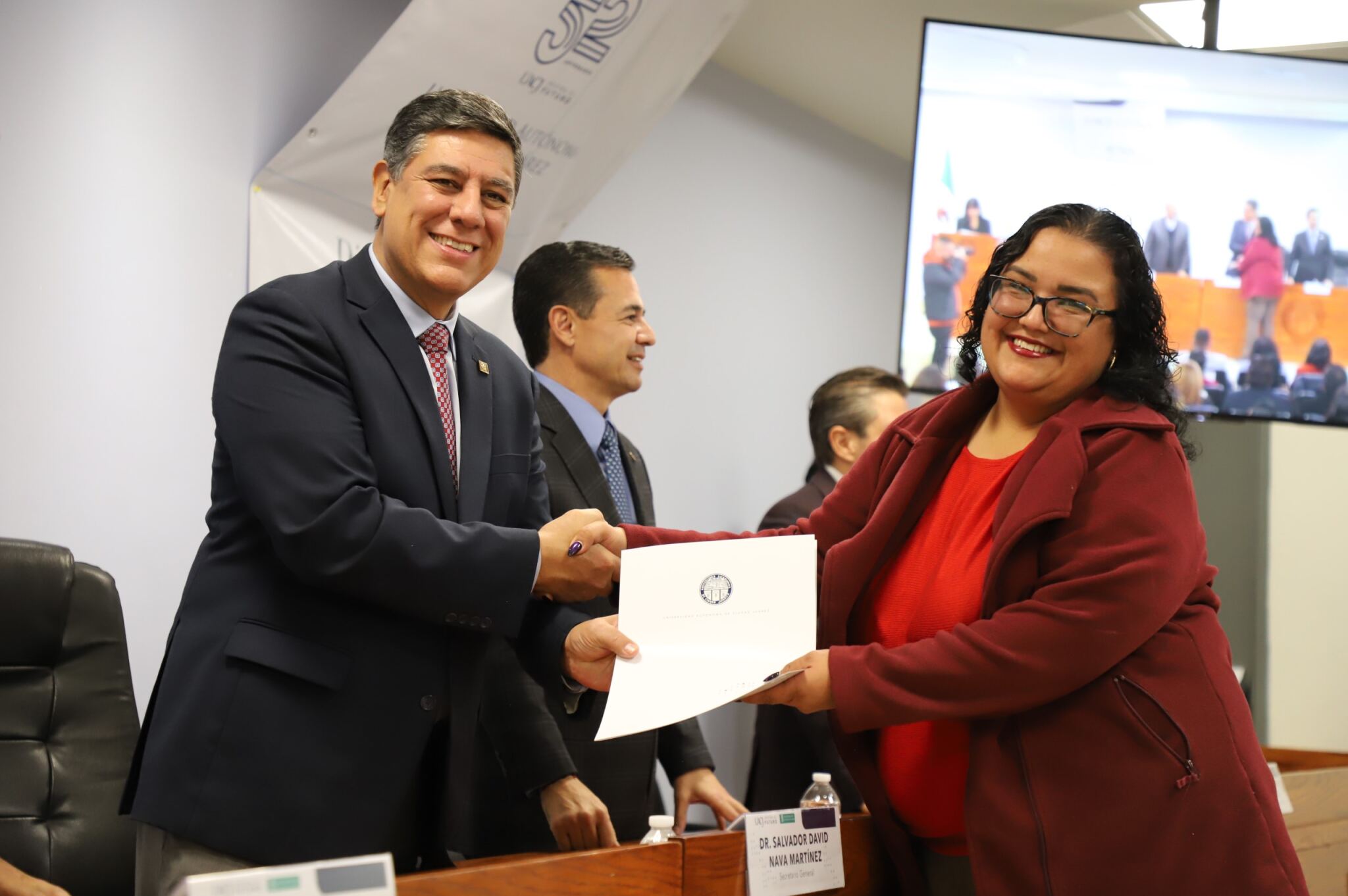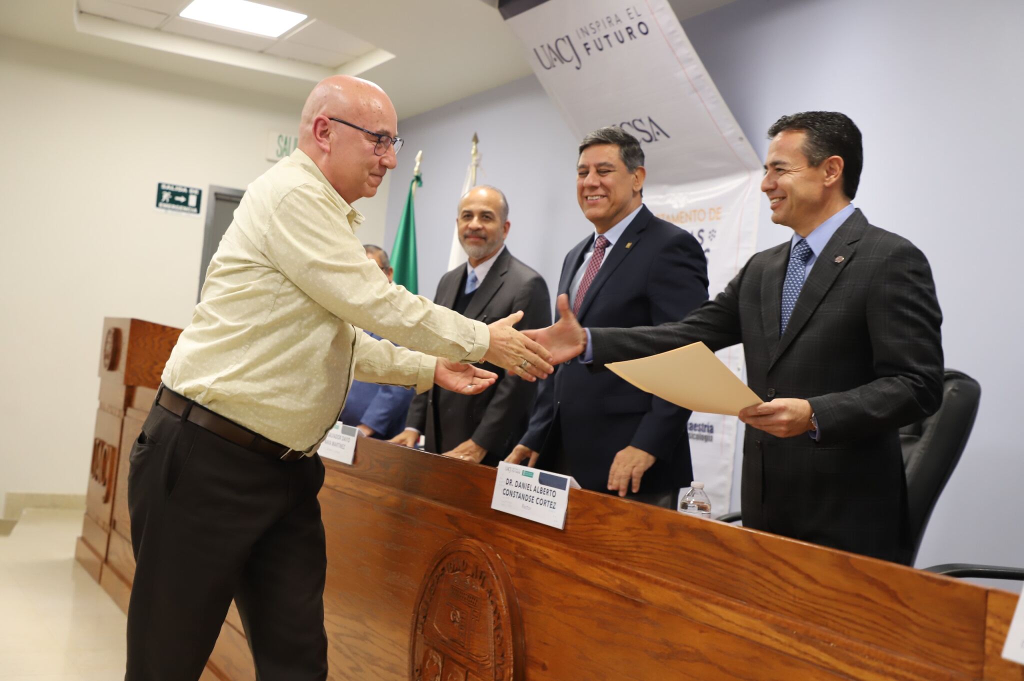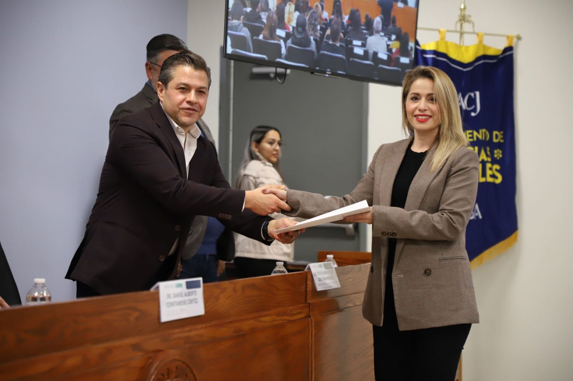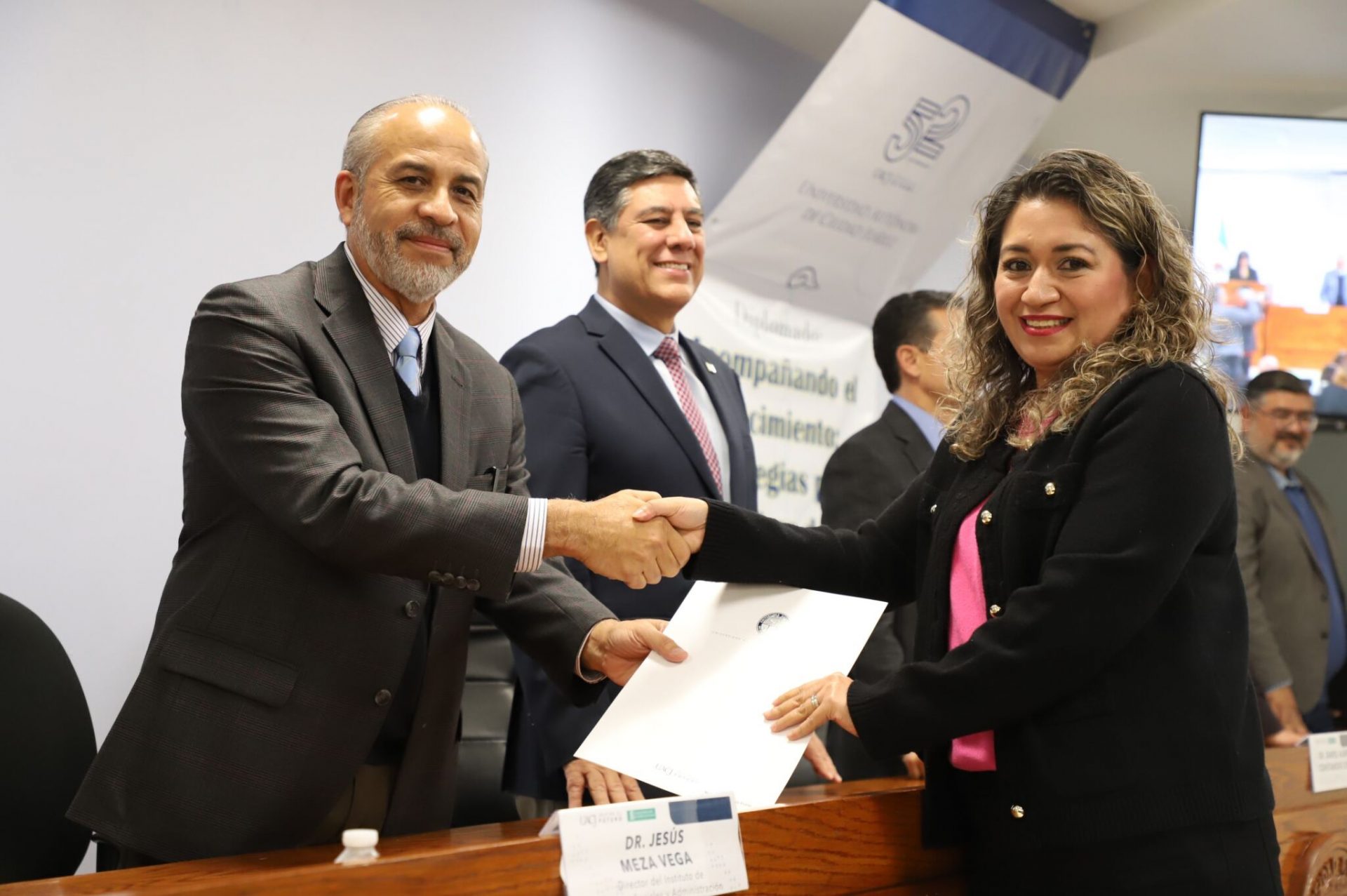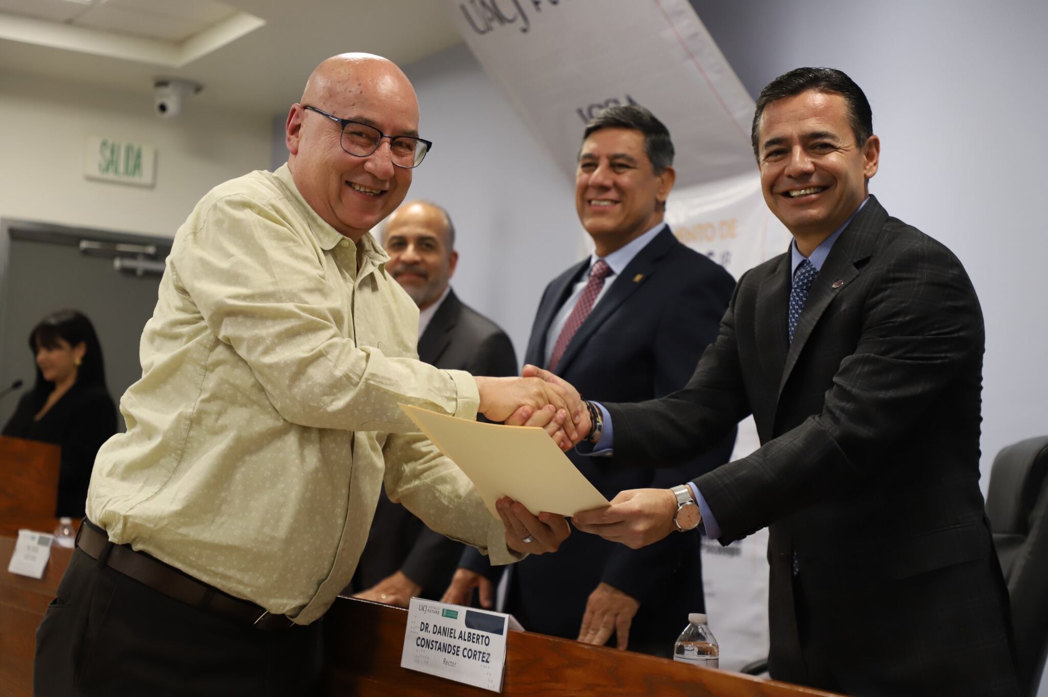 Al evento asistieron como invitados especiales las y los directores de los Planteles 5, 6, 7, 9, 11, 16 y 19 del Colegio de Bachilleres, así como autoridades universitarias convocadas: el Dr. Óscar Armando Esparza del Villar, Coordinador del Programa de Psicología; Mtro. Reyes Humberto de las Casas Muñoz, Director General del Cobach; Dr. Servando Pineda Jaimes, Jefe del Departamento de Ciencias Sociales; Lic. Laura Olivia Robledo Vega, Coordinadora Zona Norte de COBACh; Dr. Jesús Meza Vega, Director del ICSA; Dr. Salvador David Nava Martínez, Secretario General y el Dr. Daniel Alberto Constandse Cortez, Rector de la UACJ.