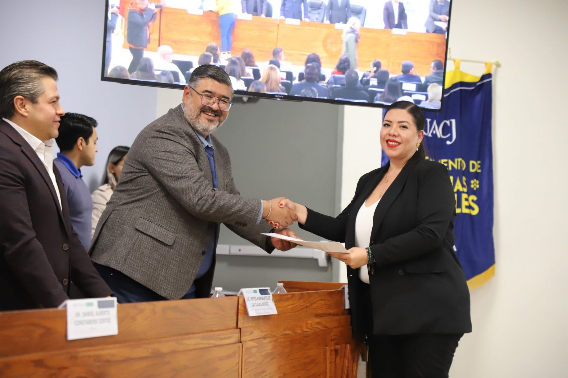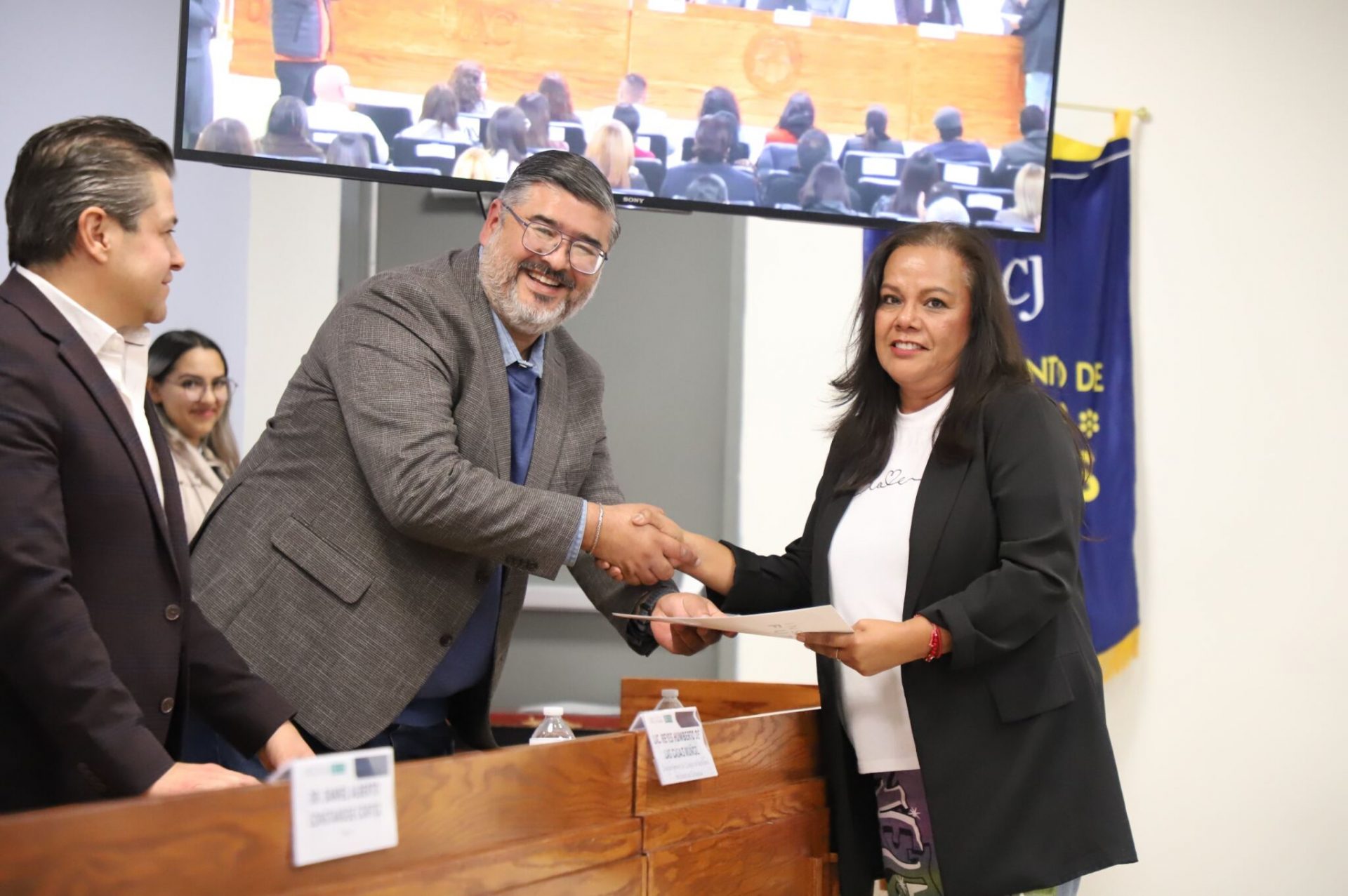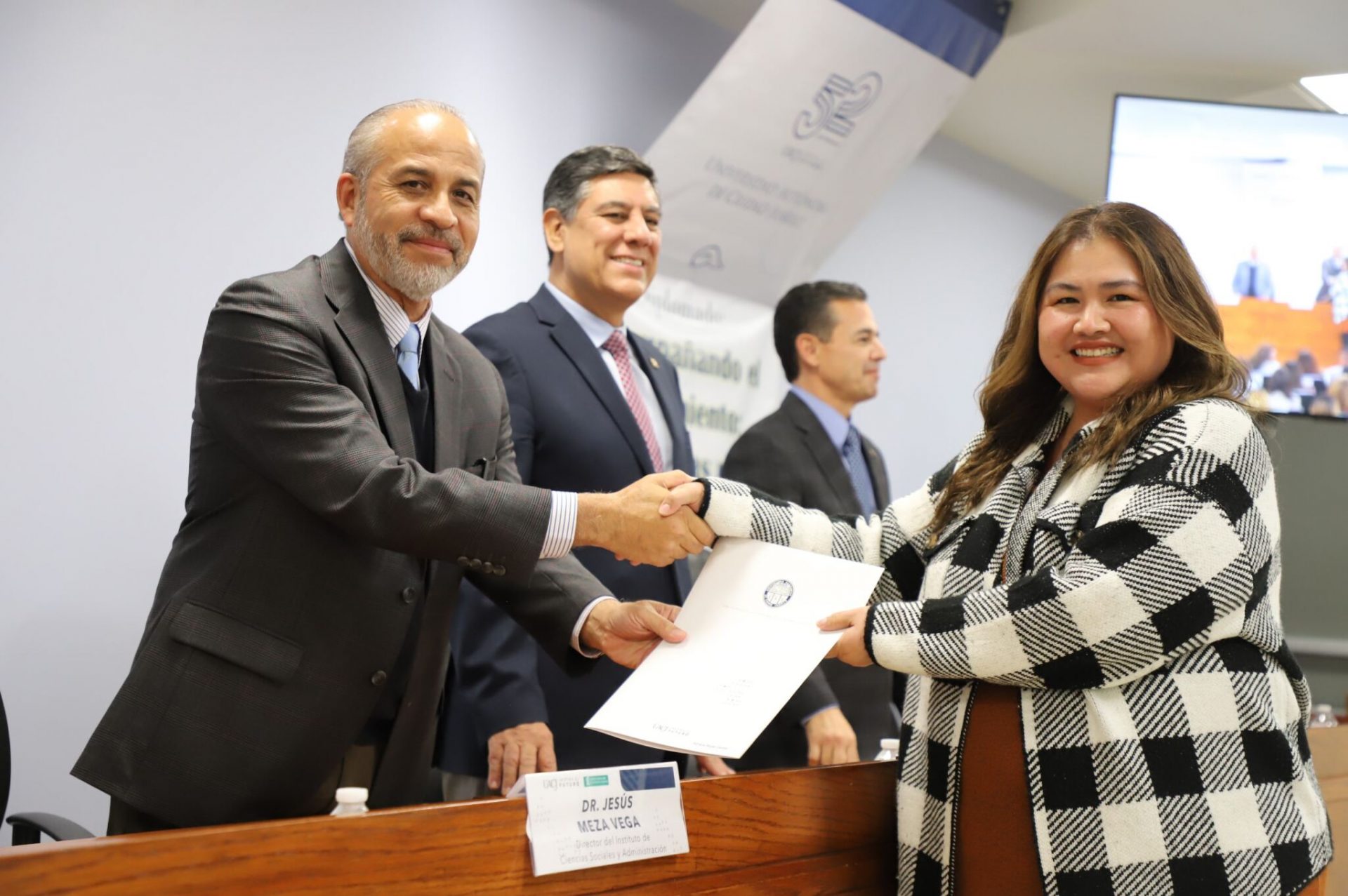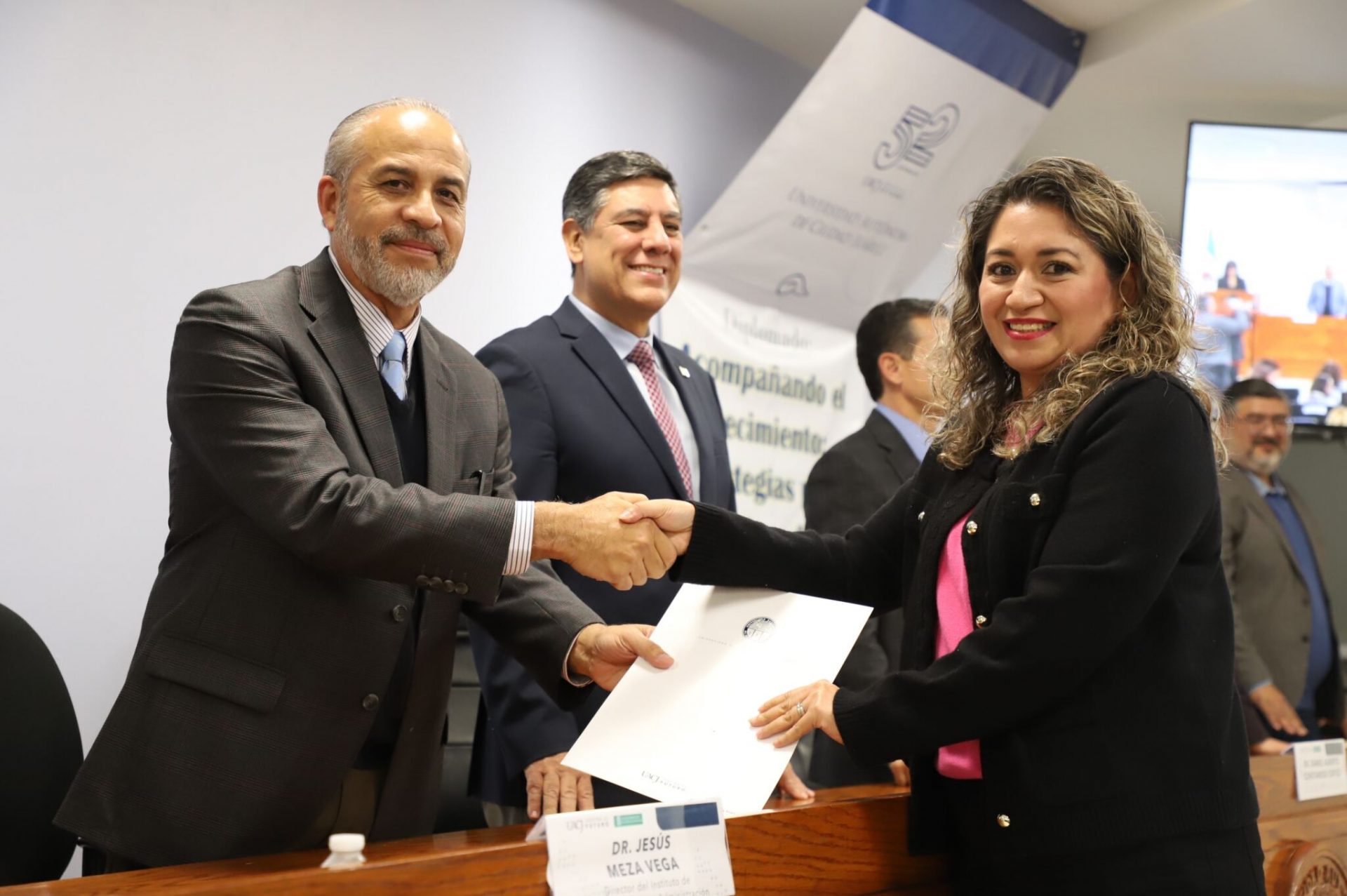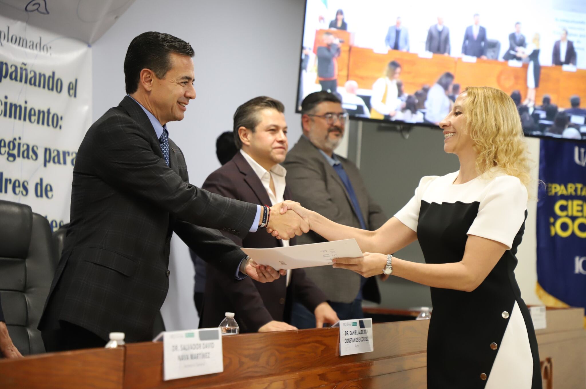 Al evento asistieron como invitados especiales las y los directores de los Planteles 5, 6, 7, 9, 11, 16 y 19 del Colegio de Bachilleres, así como autoridades universitarias convocadas: el Dr. Óscar Armando Esparza del Villar, Coordinador del Programa de Psicología; Mtro. Reyes Humberto de las Casas Muñoz, Director General del Cobach; Dr. Servando Pineda Jaimes, Jefe del Departamento de Ciencias Sociales; Lic. Laura Olivia Robledo Vega, Coordinadora Zona Norte de COBACh; Dr. Jesús Meza Vega, Director del ICSA; Dr. Salvador David Nava Martínez, Secretario General y el Dr. Daniel Alberto Constandse Cortez, Rector de la UACJ.