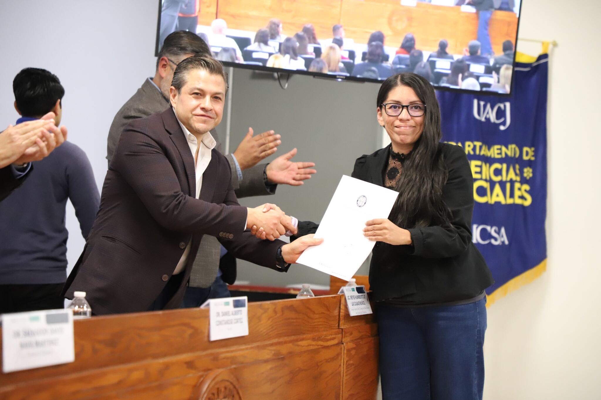 La ceremonia tuvo lugar en el Auditorio “8 de marzo”, en el Edificio X del Instituto de Ciencias Sociales y Administración (ICSA), a las 19:15 horas, donde se entregaron 42 constancias a los participantes.