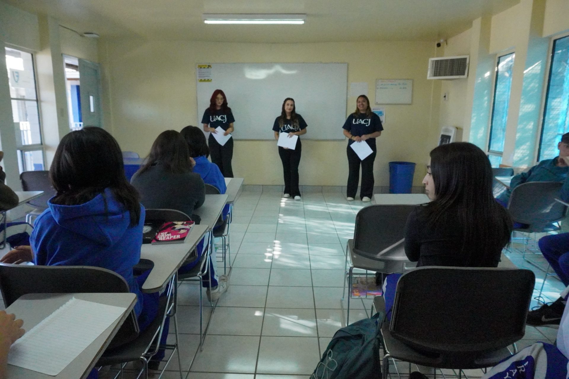 Estudiantes de educación y psicología de la UACJ, Campus Nuevo Casas Grandes, llevaron el evento literario “Momentos de inspiración” a las aulas de la escuela secundaria y preparatoria Fray Felipe de Jesús.
