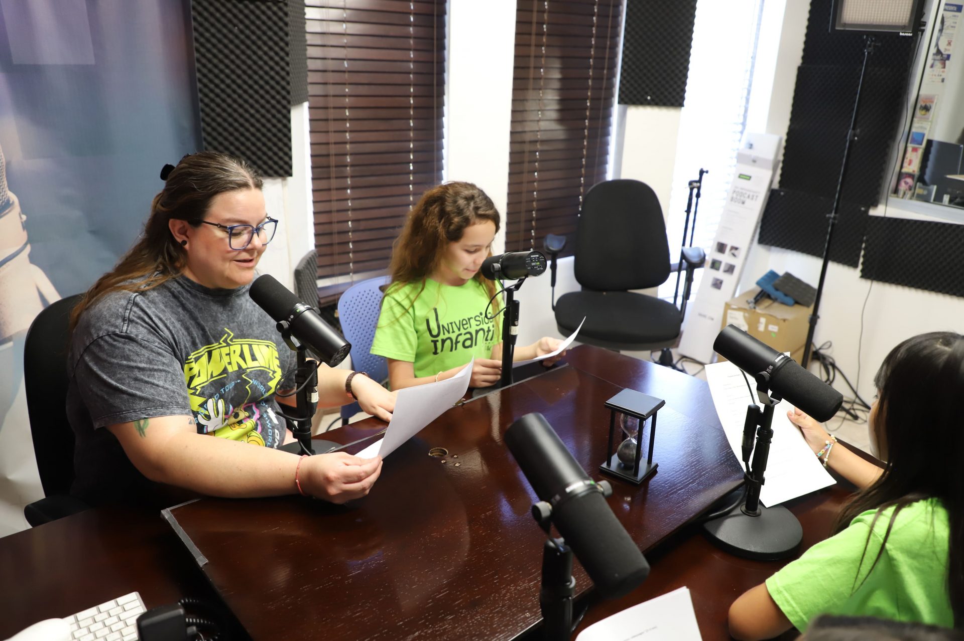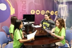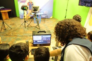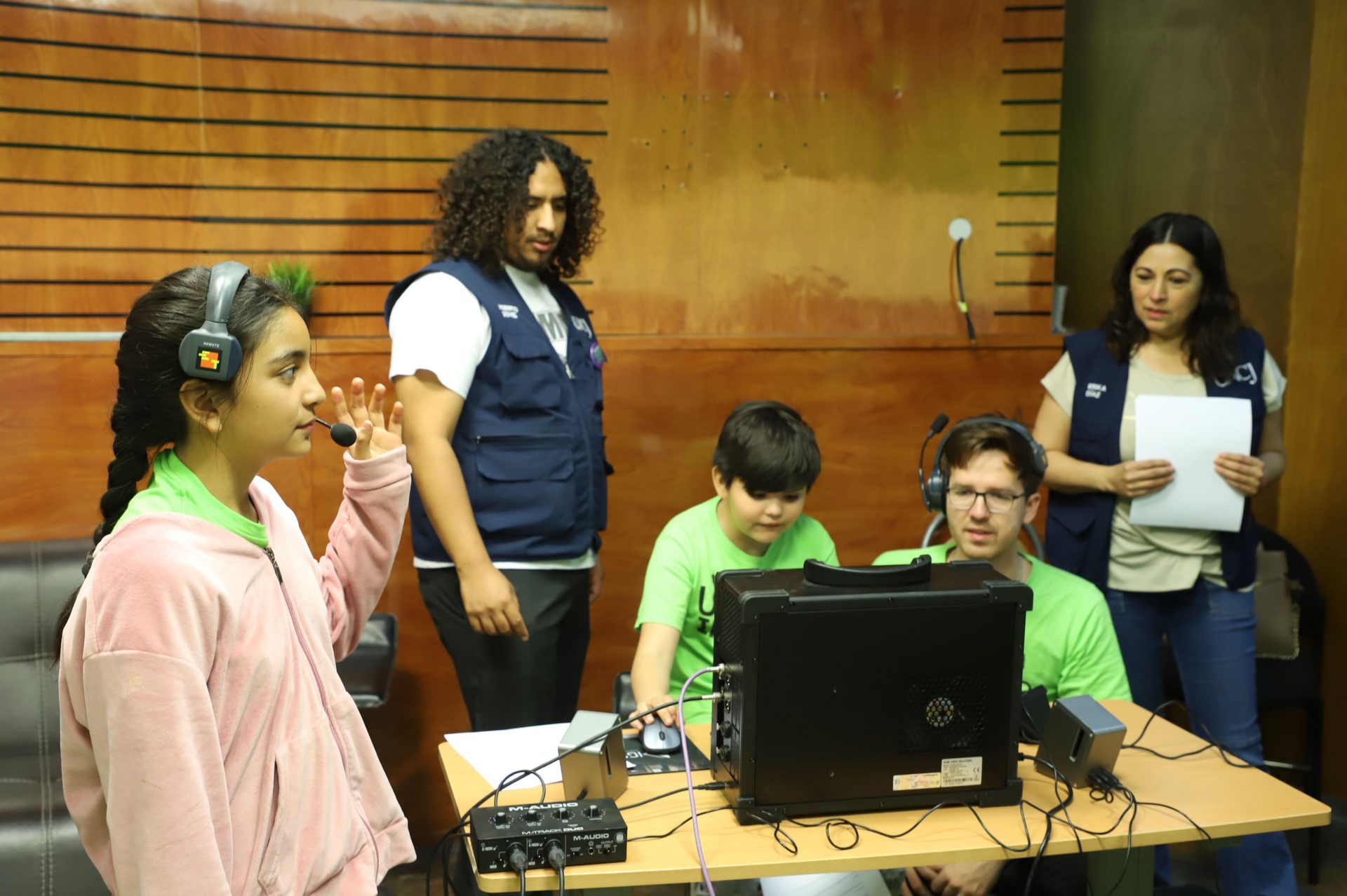 Al llegar a las instalaciones, niñas y niños se prepararon para vivir la experiencia de conocer, producir y conducir un programa radial o de televisión; convivieron con el uso de herramientas de comunicación: micrófonos, consolas y monitores de audio.
