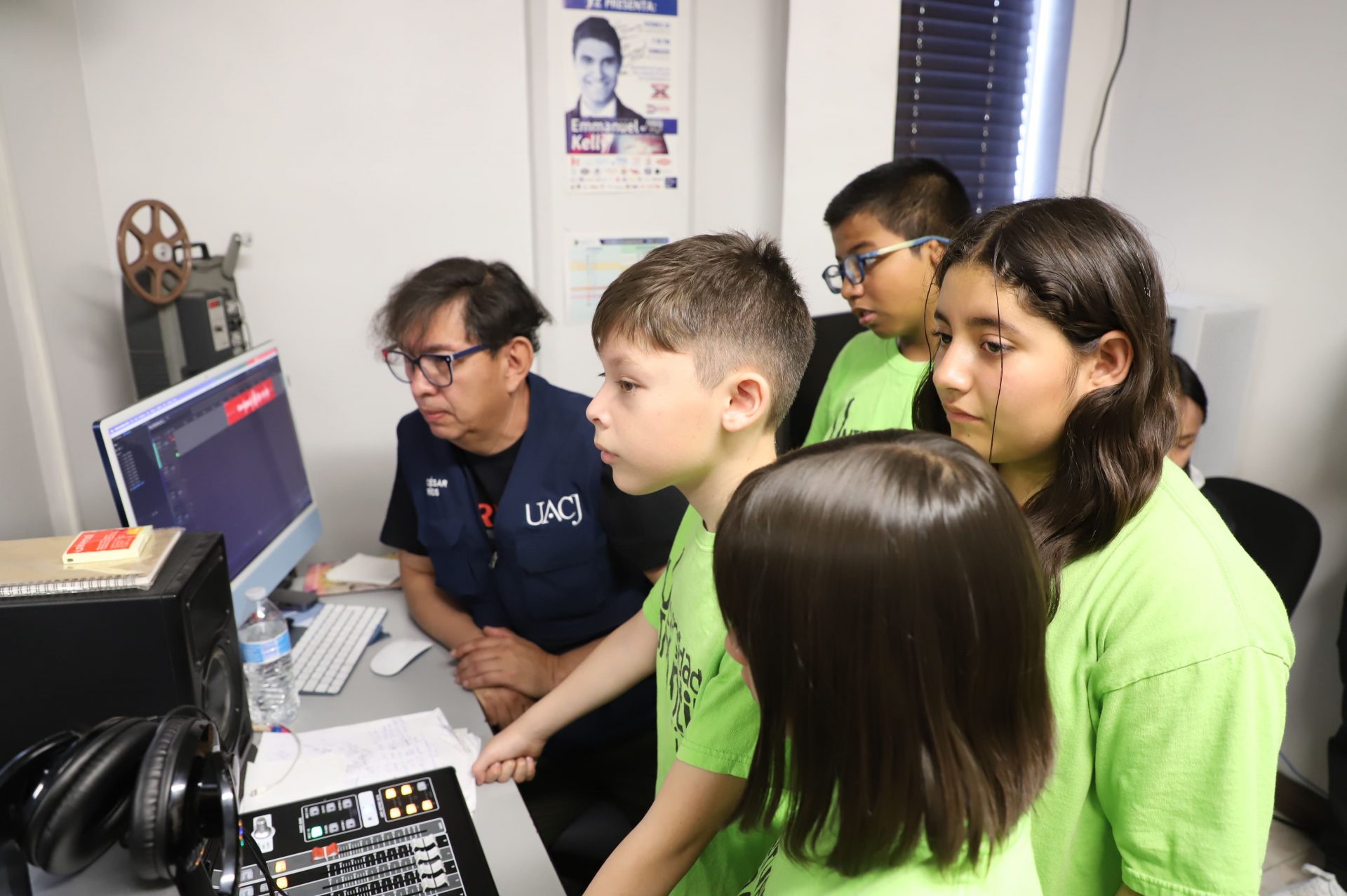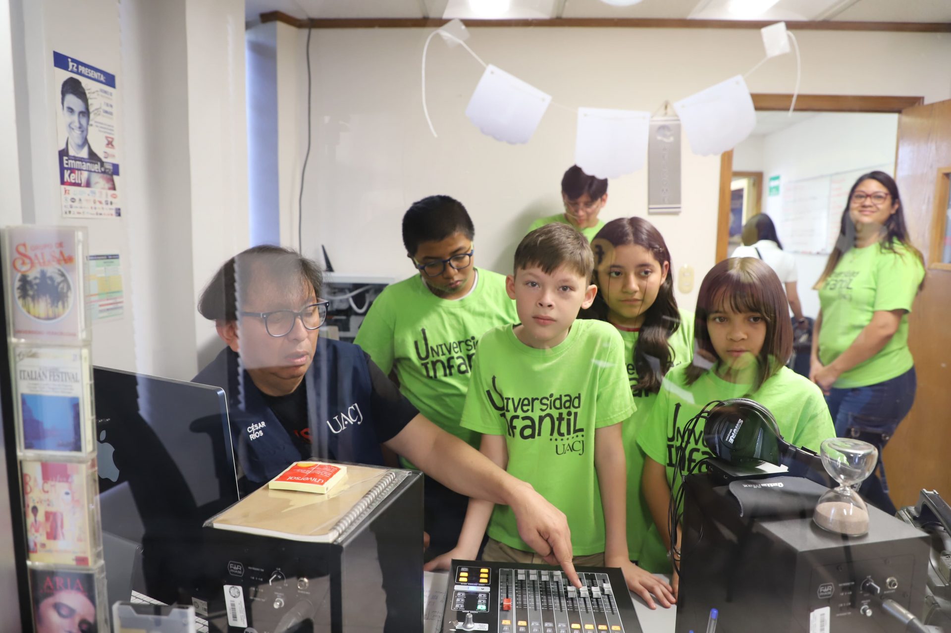 Este 25 de abril el recorrido inició en el Centro Universitario de Idiomas; unos metros adelante, en el edificio de Ex Rectoría, se abrieron las puertas para conocer Radio UACJ y TV UACJ. Finalizando el recorrido, las niñas y niños disfrutaron de una película infantil en la Sala Federico Ferro Gay.