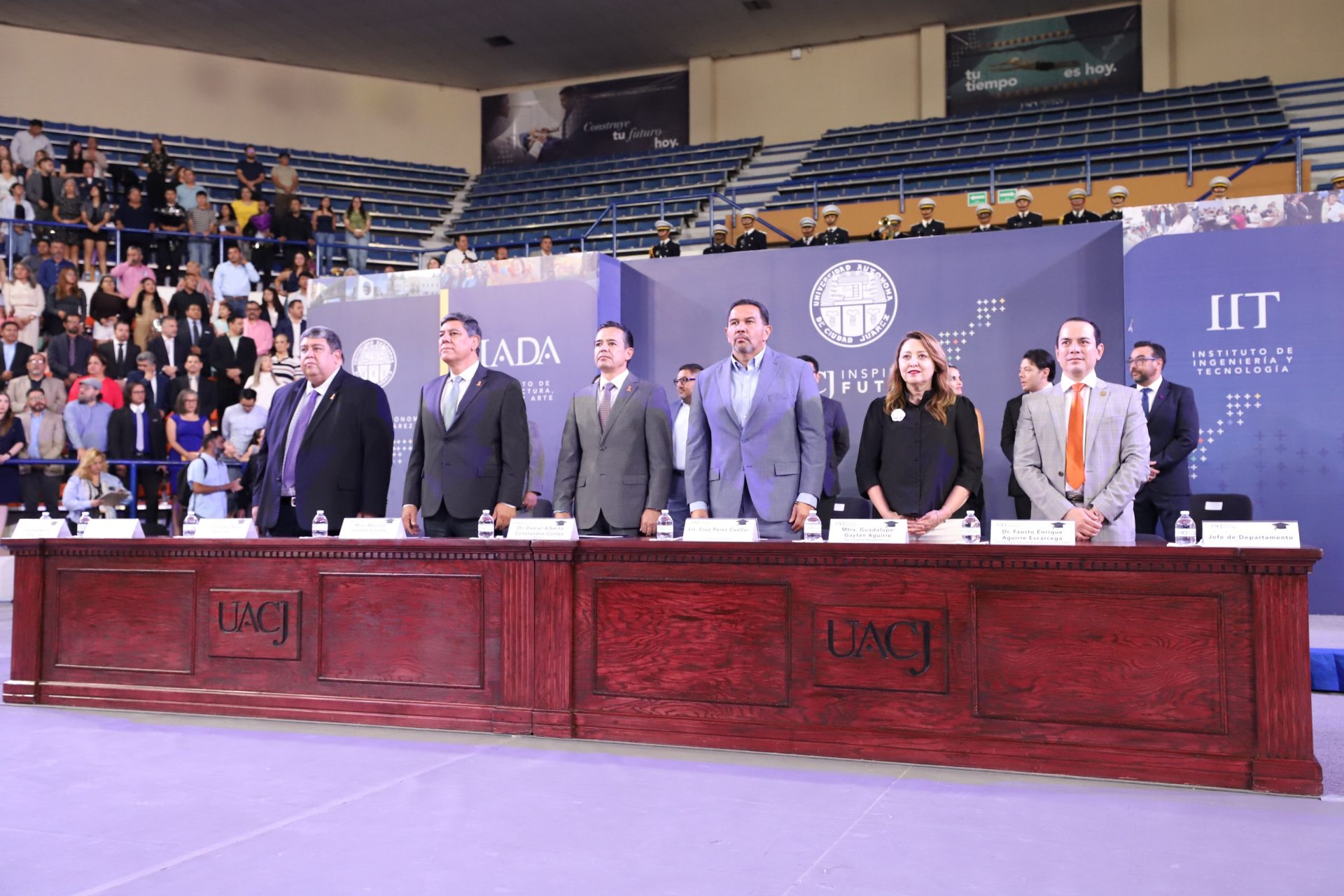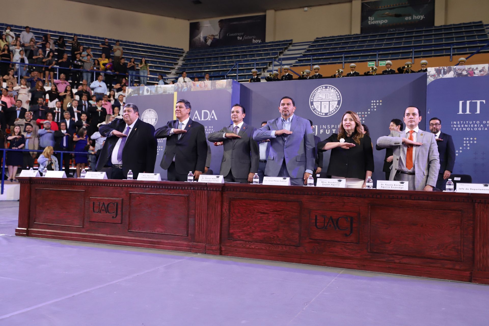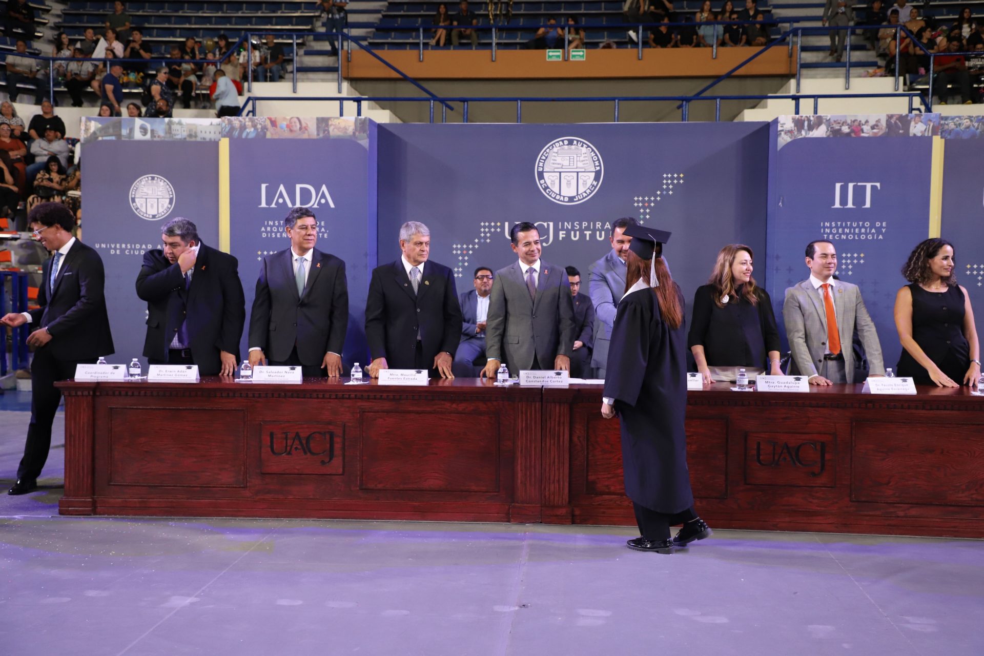 Fueron convocados a esta ceremonia de graduación el Dr. Fausto Enrique Aguirre Escárcega, Director del Instituto de Arquitectura, Diseño y Arte; el Dr. Erwin Adán Martínez Gómez, Director del Instituto de Ingeniería y Tecnología; la Mtra. Guadalupe Gaytán Aguirre, Secretaria Académica; el Dr. Salvador David Nava Martínez, Secretario General; el Mtro. Maurilio Fuentes Estrada, Subsecretario de Educación y Deporte Zona Norte del estado de Chihuahua, el Lic. Cruz Pérez Cuellar, Presidente Municipal de Ciudad Juárez, así como el Dr. Daniel Alberto Constandse Cortez, Rector de esta institución formativa.
