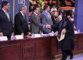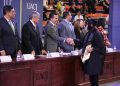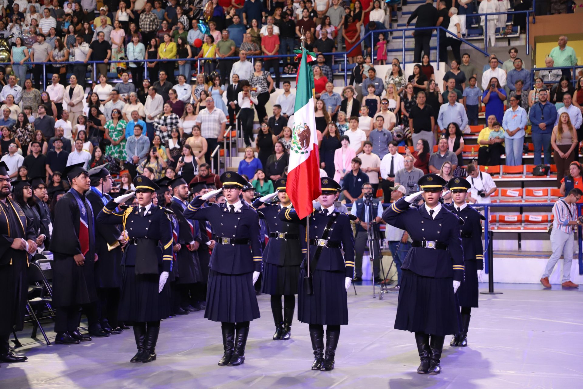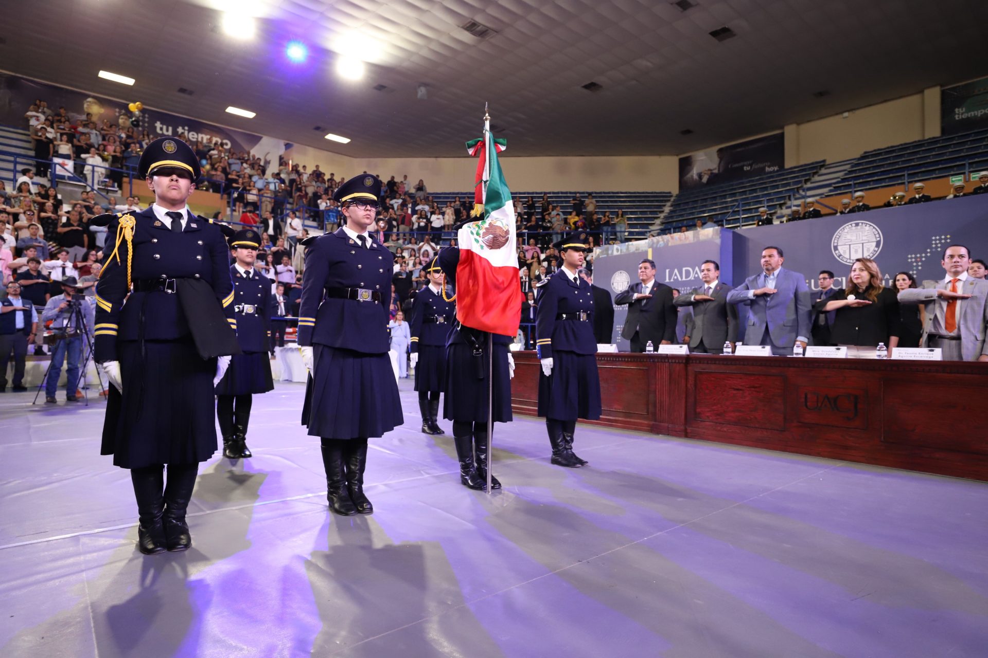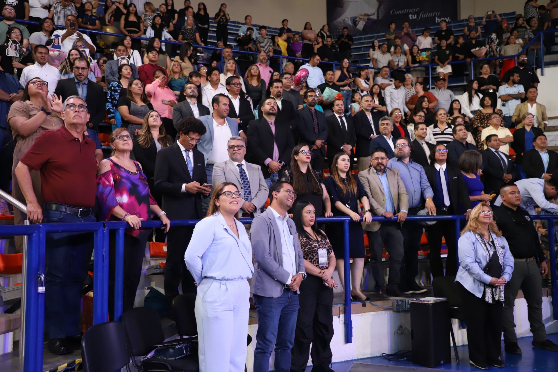 La ceremonia, realizada en el Gimnasio Universitario, comenzó con honores a la bandera y la entonación del himno nacional, para después dar paso a la presencia de autoridades universitarias y civiles que acompañaron el acto.