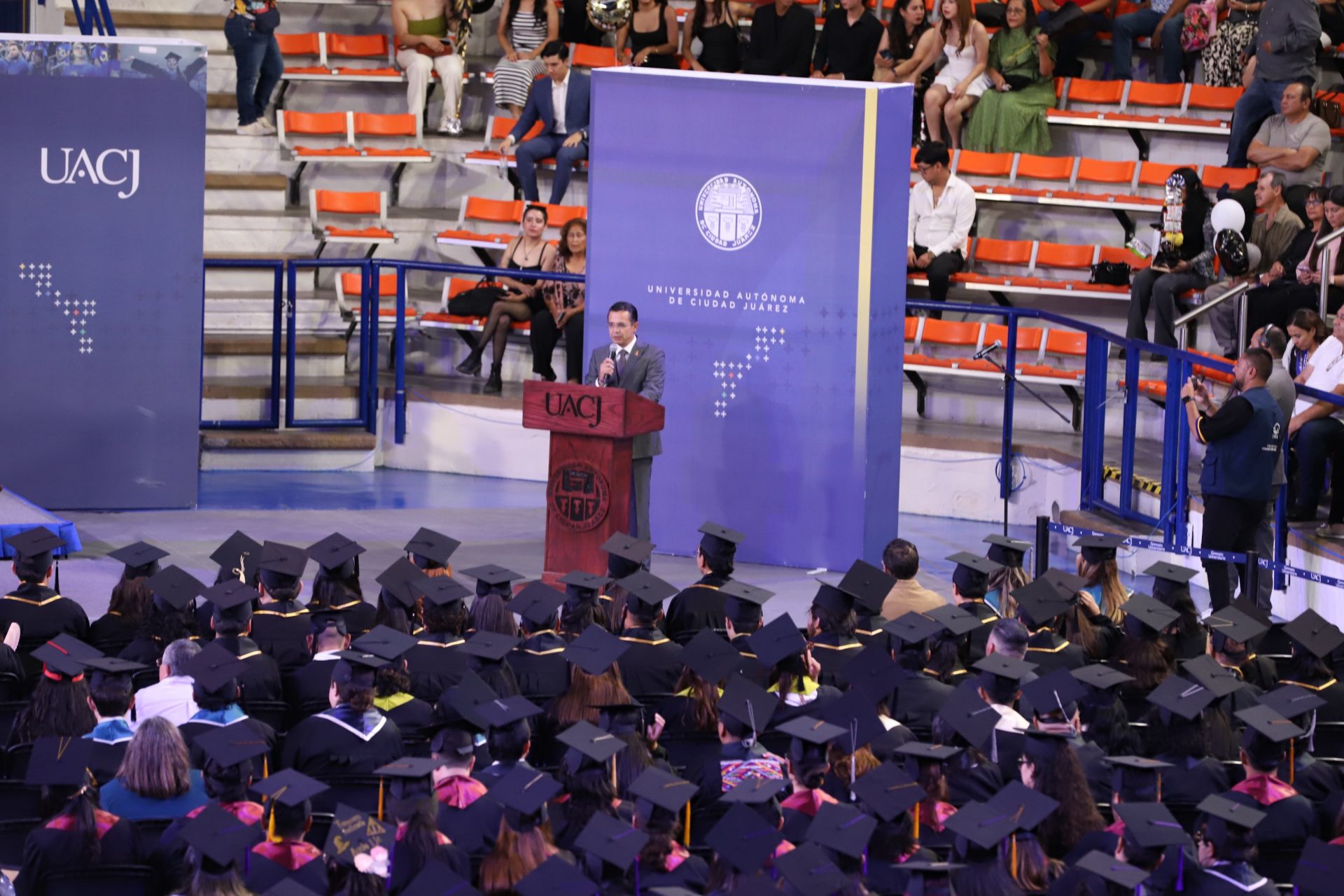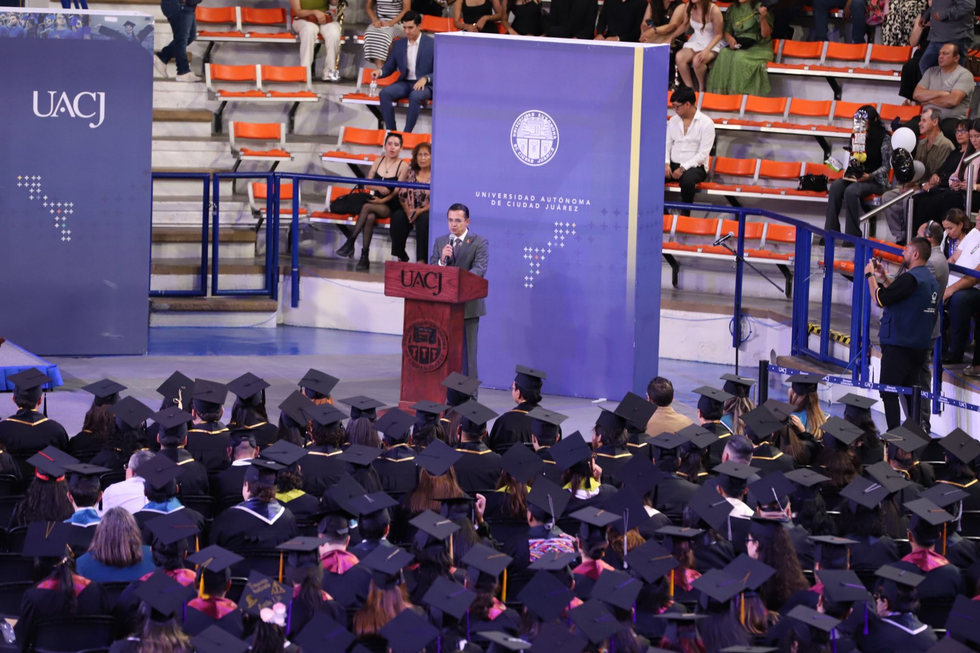 El rector de la UACJ, Dr. Daniel Constandse Cortez, invitó a los graduados a seguir preparándose para la vida con una visión de educación continua.