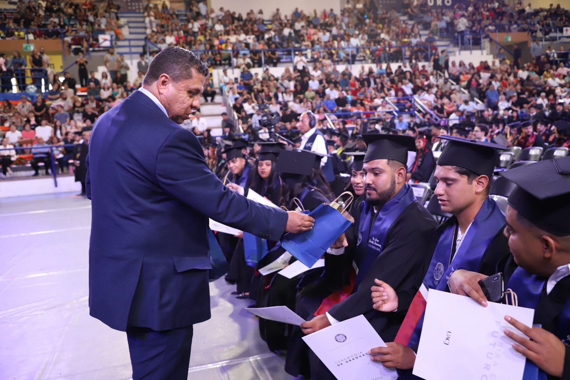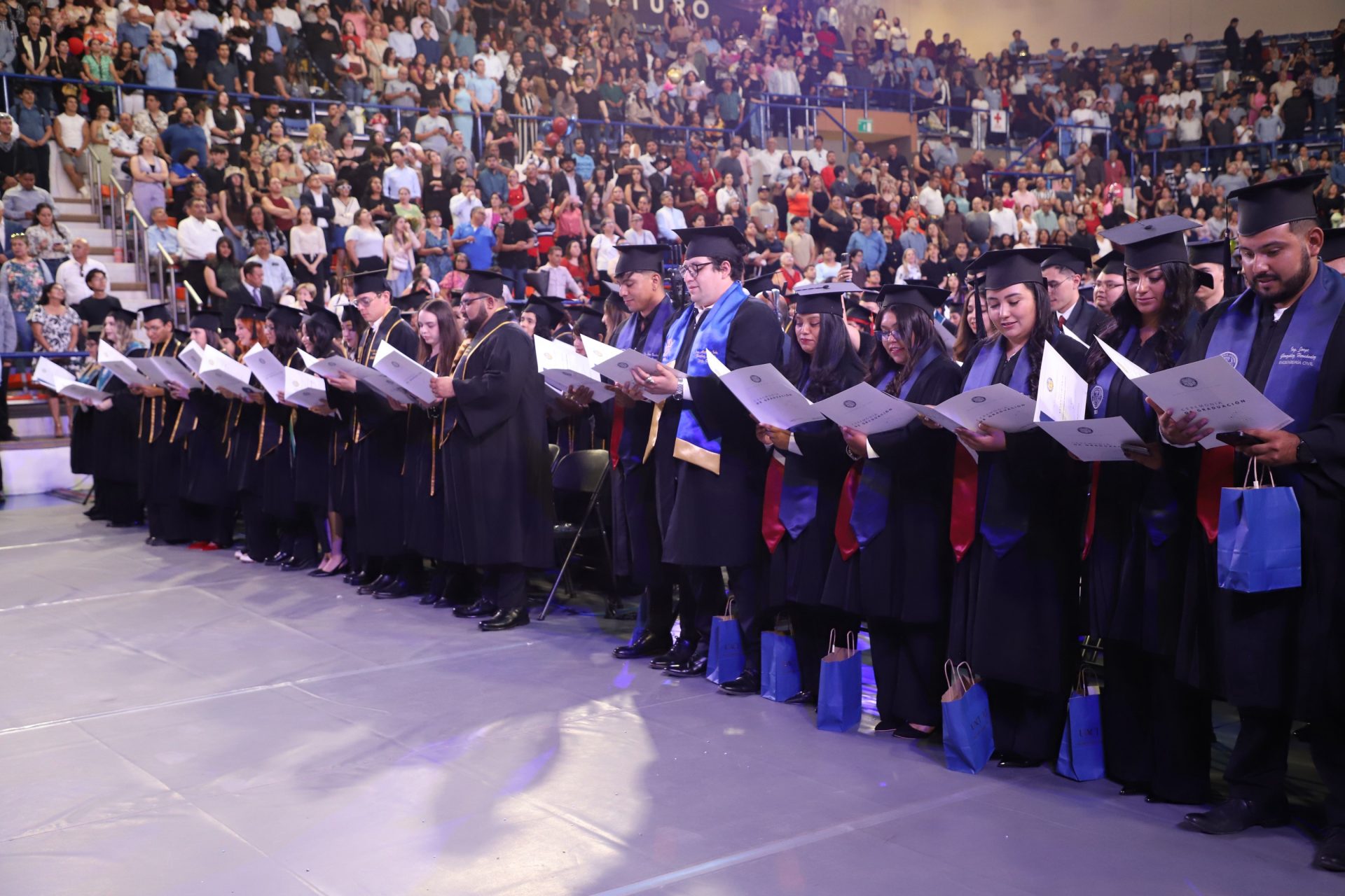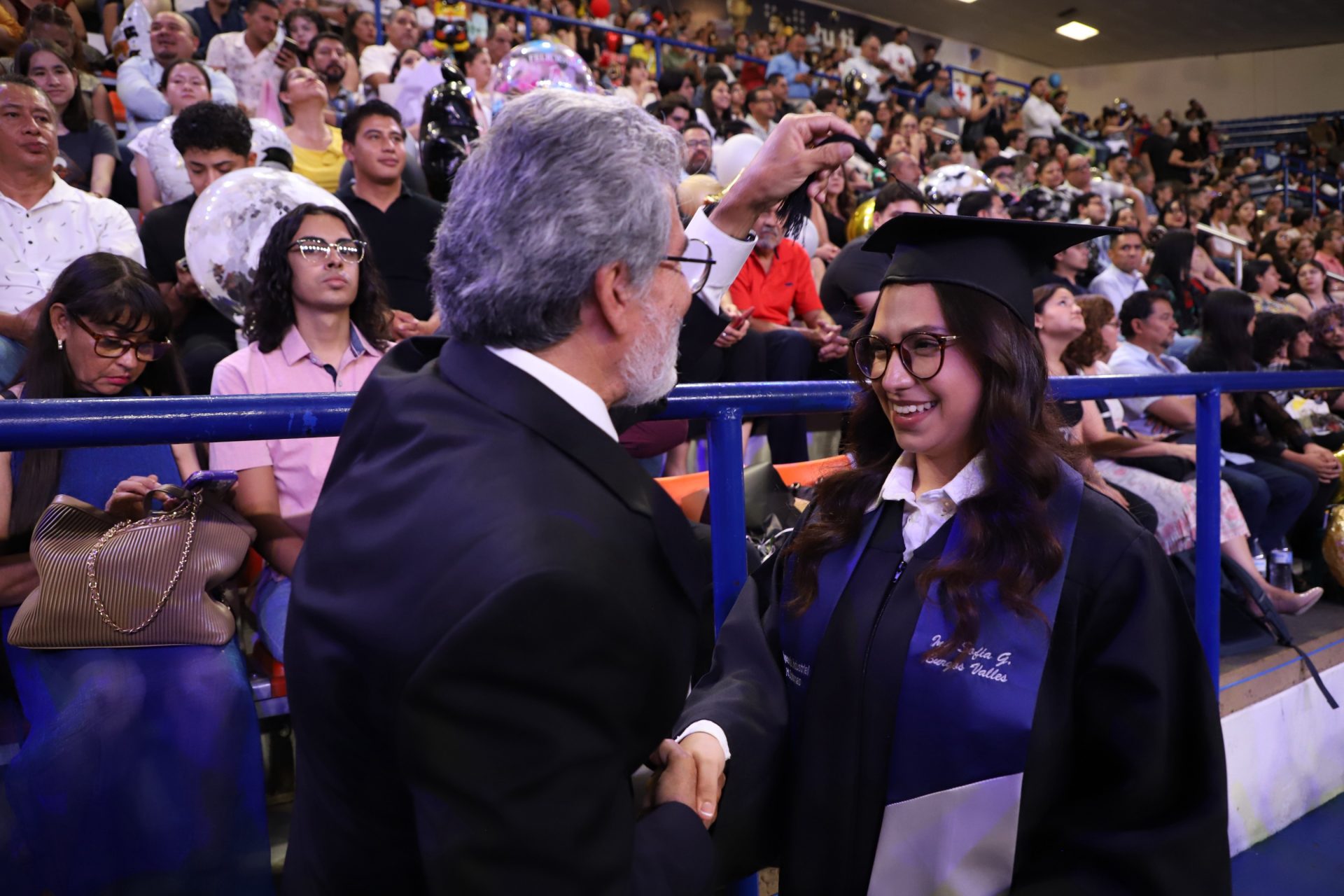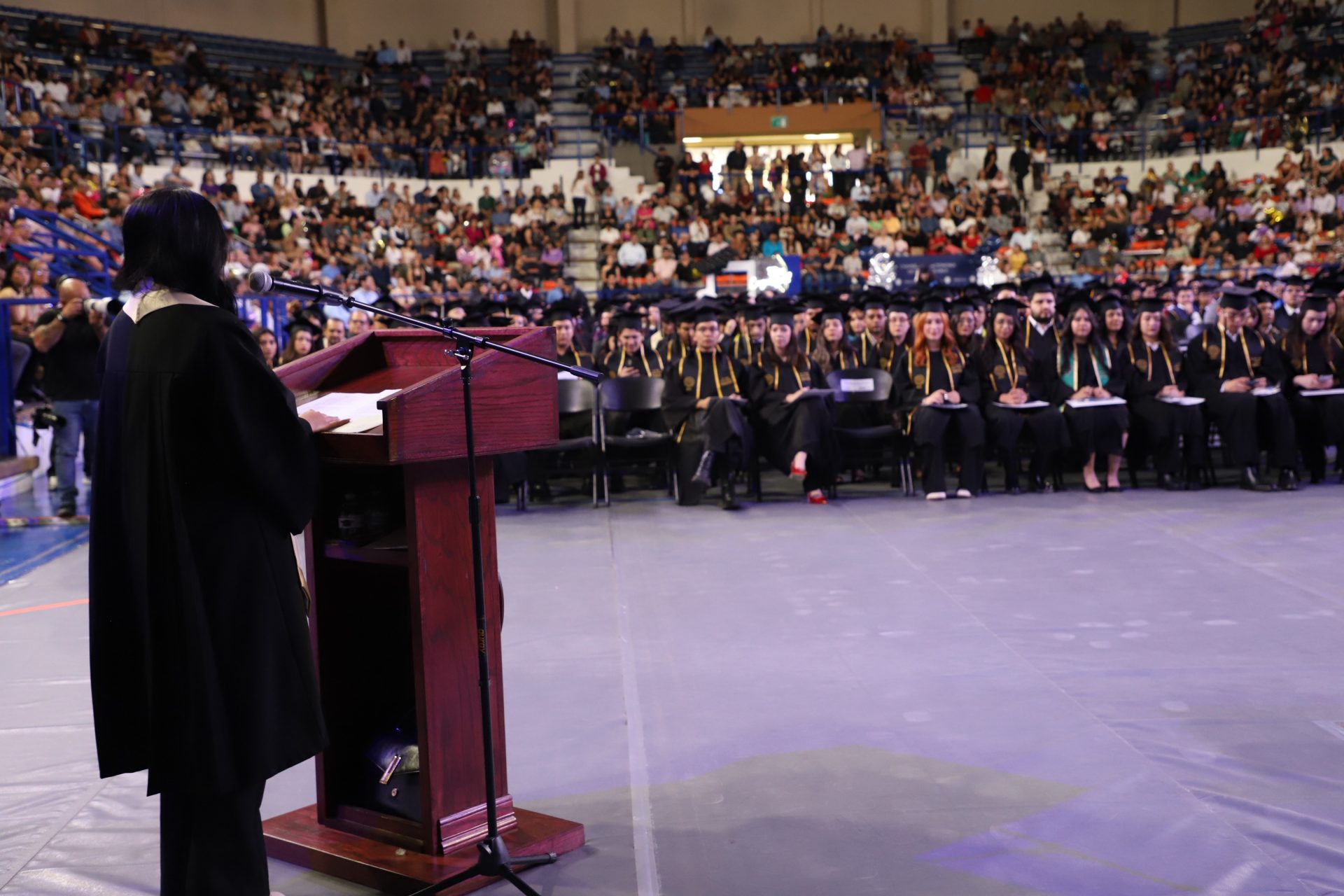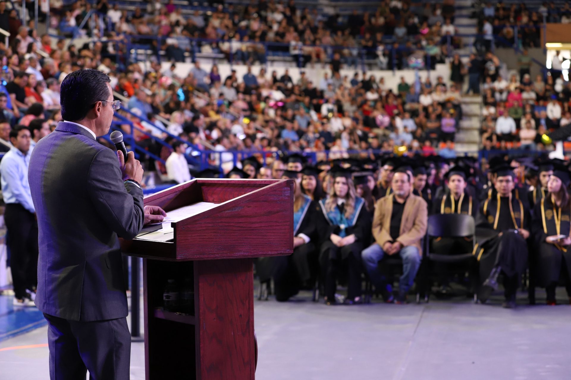 Y con palabras que resonaron en el gimnasio universitario, agregó: “En sus manos estarán las decisiones que impactarán a las próximas generaciones. Háganlo con pasión, compromiso y entusiasmo. Ustedes tienen las competencias para mejorar nuestra ciudad y nuestro entorno en general”.