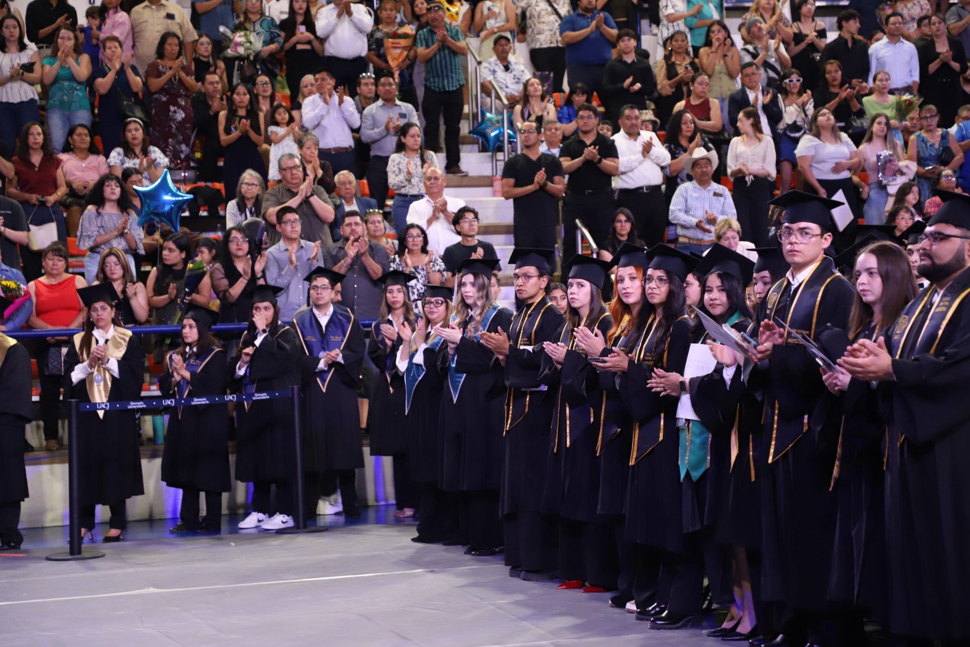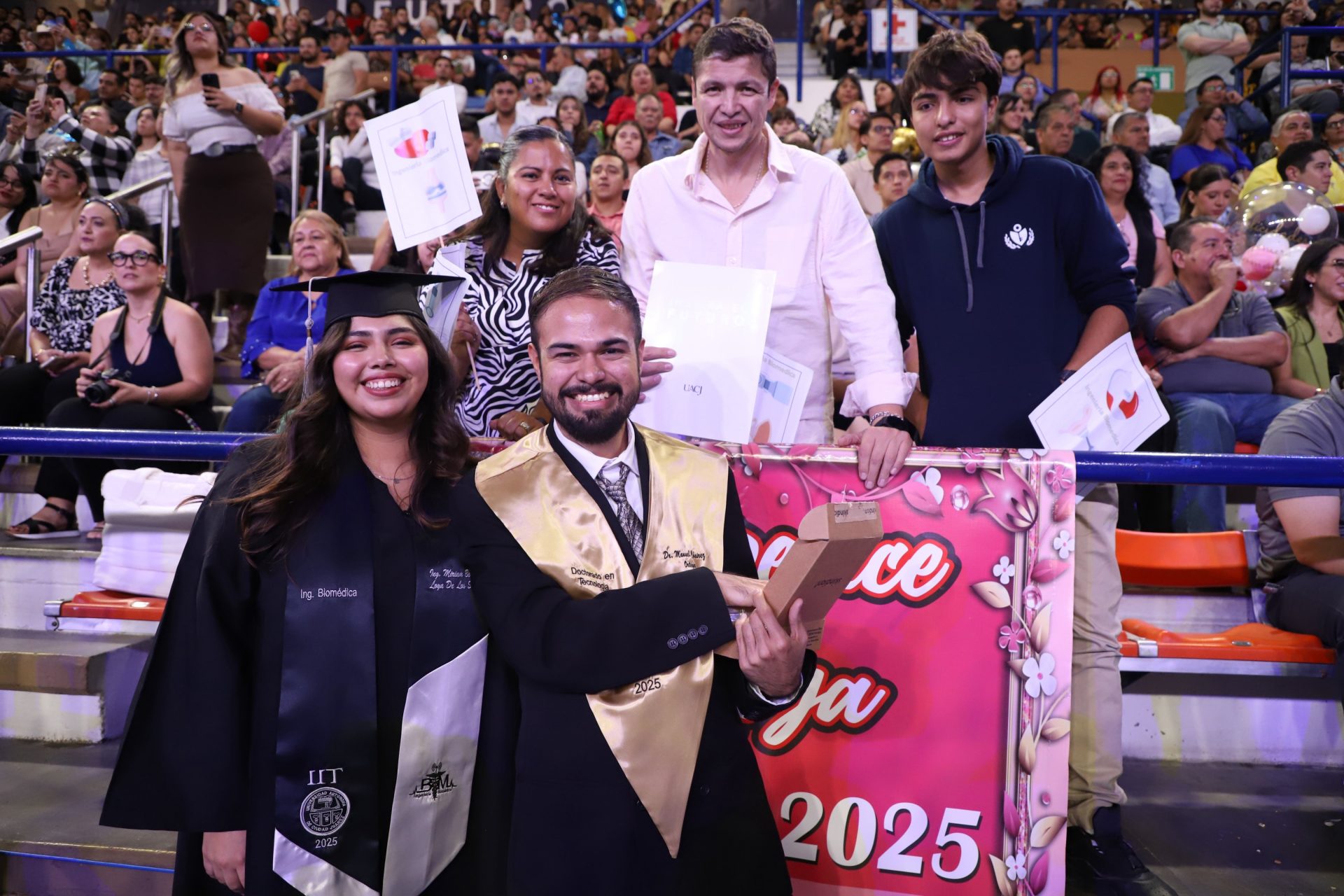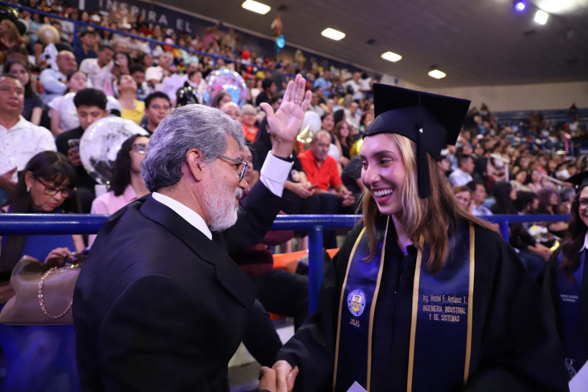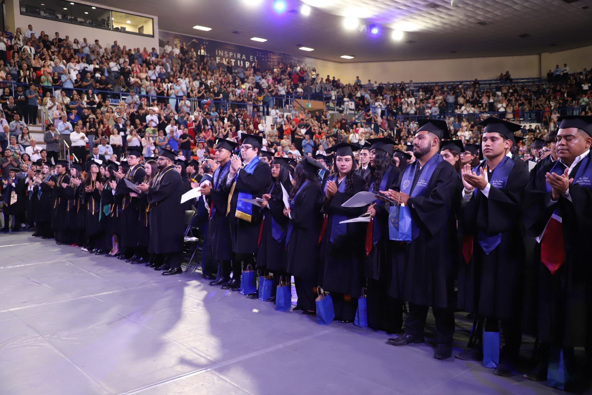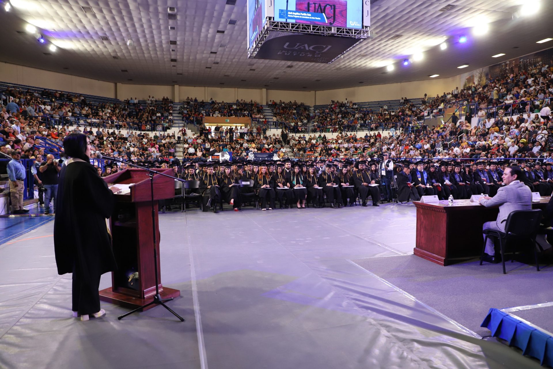 Y con palabras que resonaron en el gimnasio universitario, agregó: “En sus manos estarán las decisiones que impactarán a las próximas generaciones. Háganlo con pasión, compromiso y entusiasmo. Ustedes tienen las competencias para mejorar nuestra ciudad y nuestro entorno en general”.