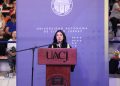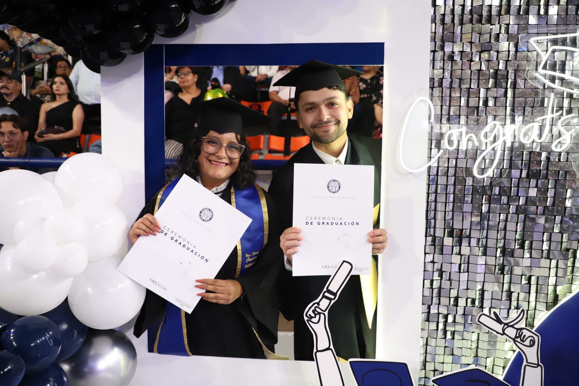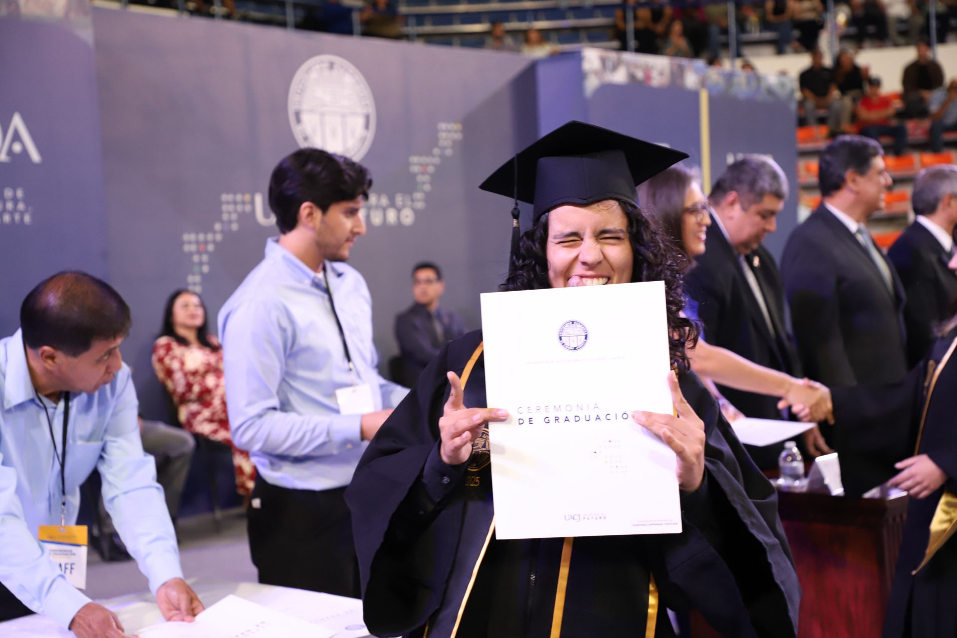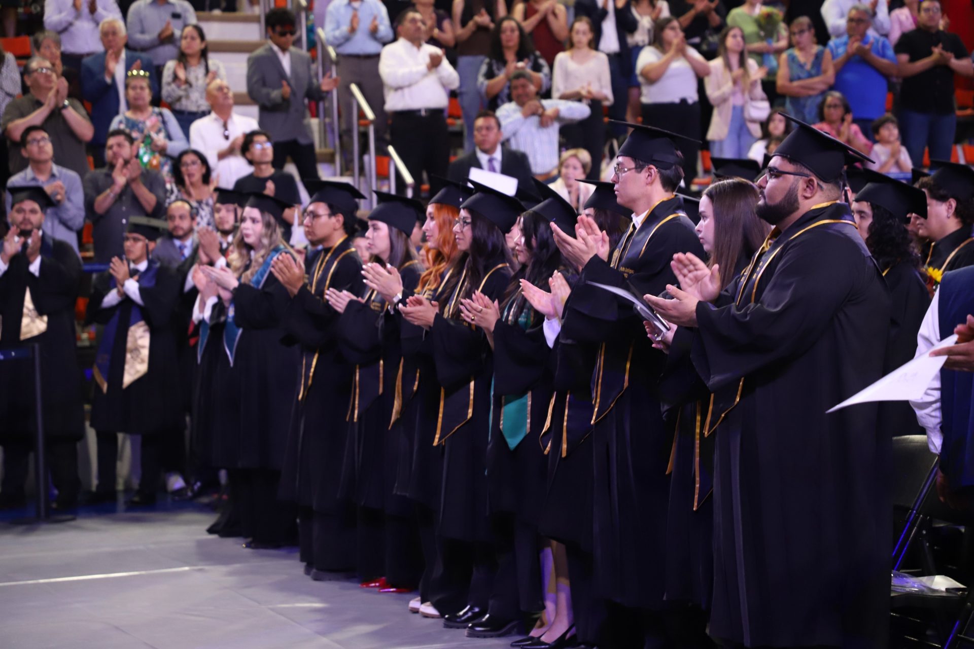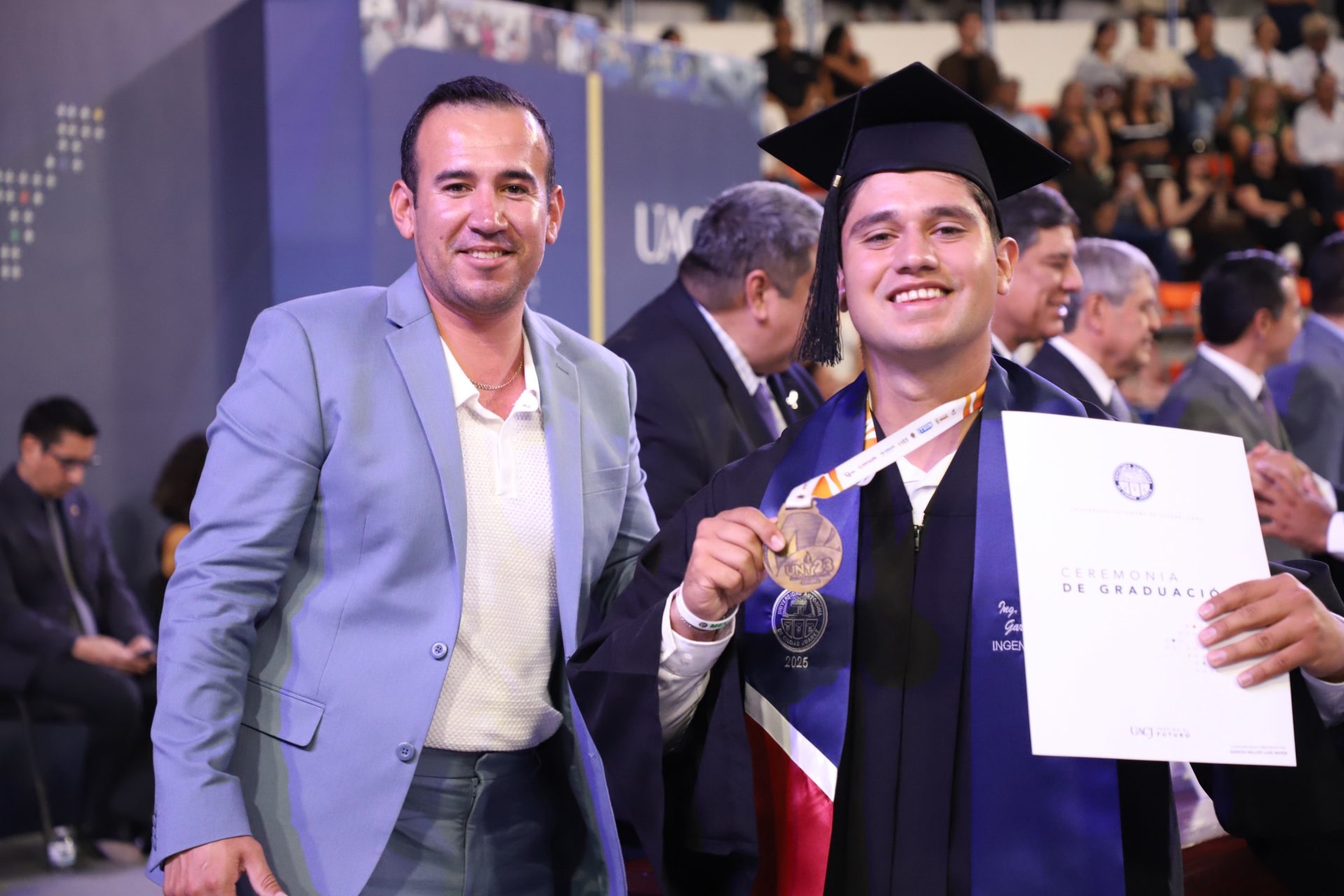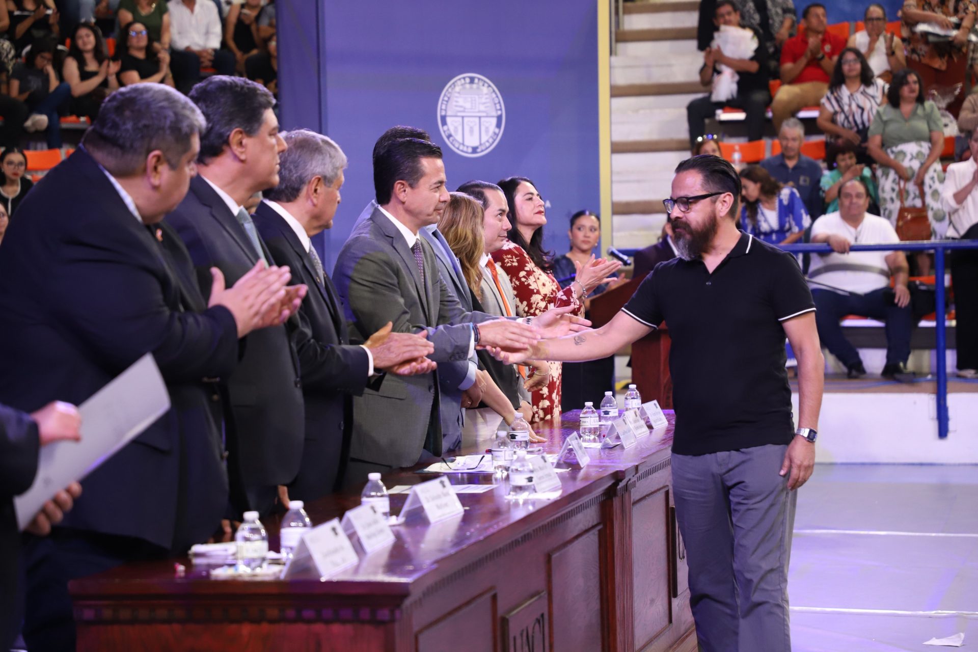 Y con palabras que resonaron en el gimnasio universitario, agregó: “En sus manos estarán las decisiones que impactarán a las próximas generaciones. Háganlo con pasión, compromiso y entusiasmo. Ustedes tienen las competencias para mejorar nuestra ciudad y nuestro entorno en general”.