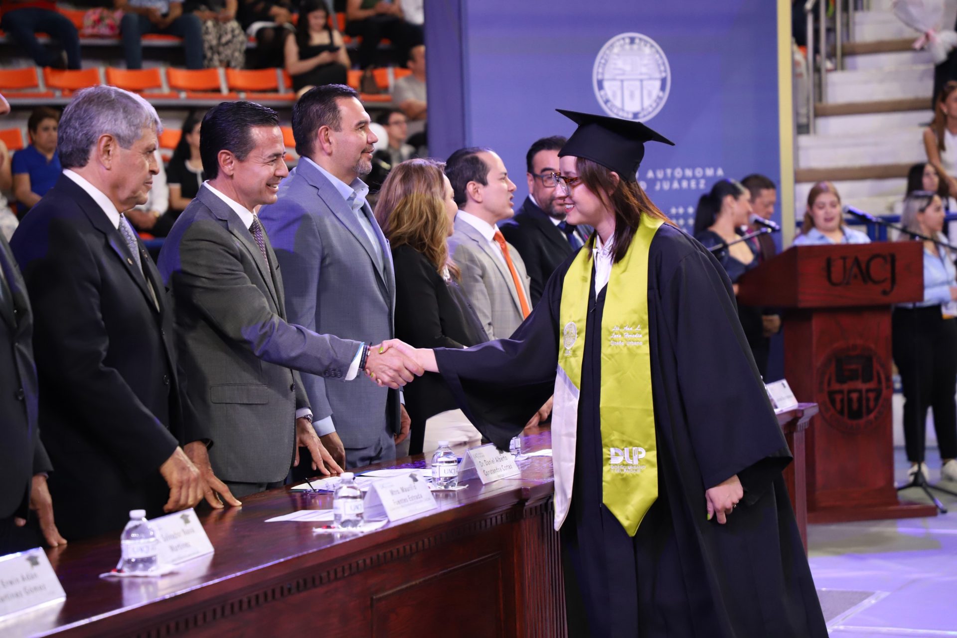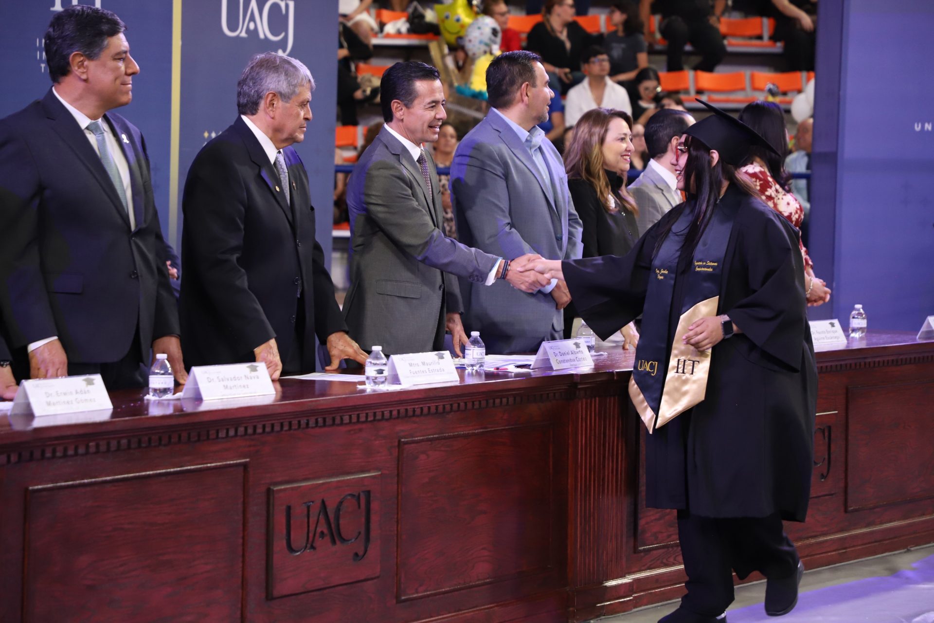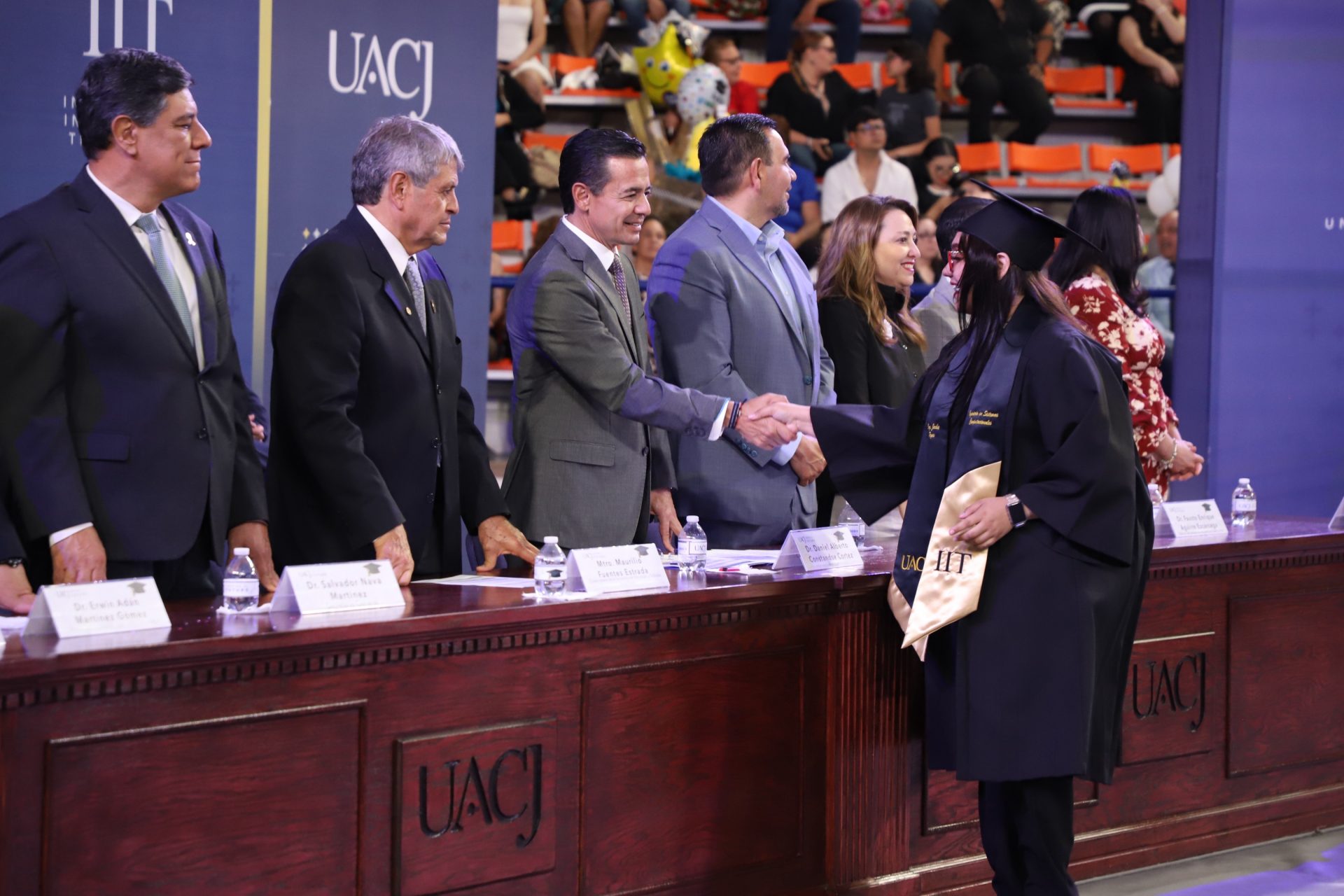 “Necesitamos seguir actualizándonos en estos momentos vertiginosos que vive la sociedad con la tecnología. La UACJ les abre sus puertas siempre para diplomados, maestrías y doctorados. Esta es su casa”, afirmó.