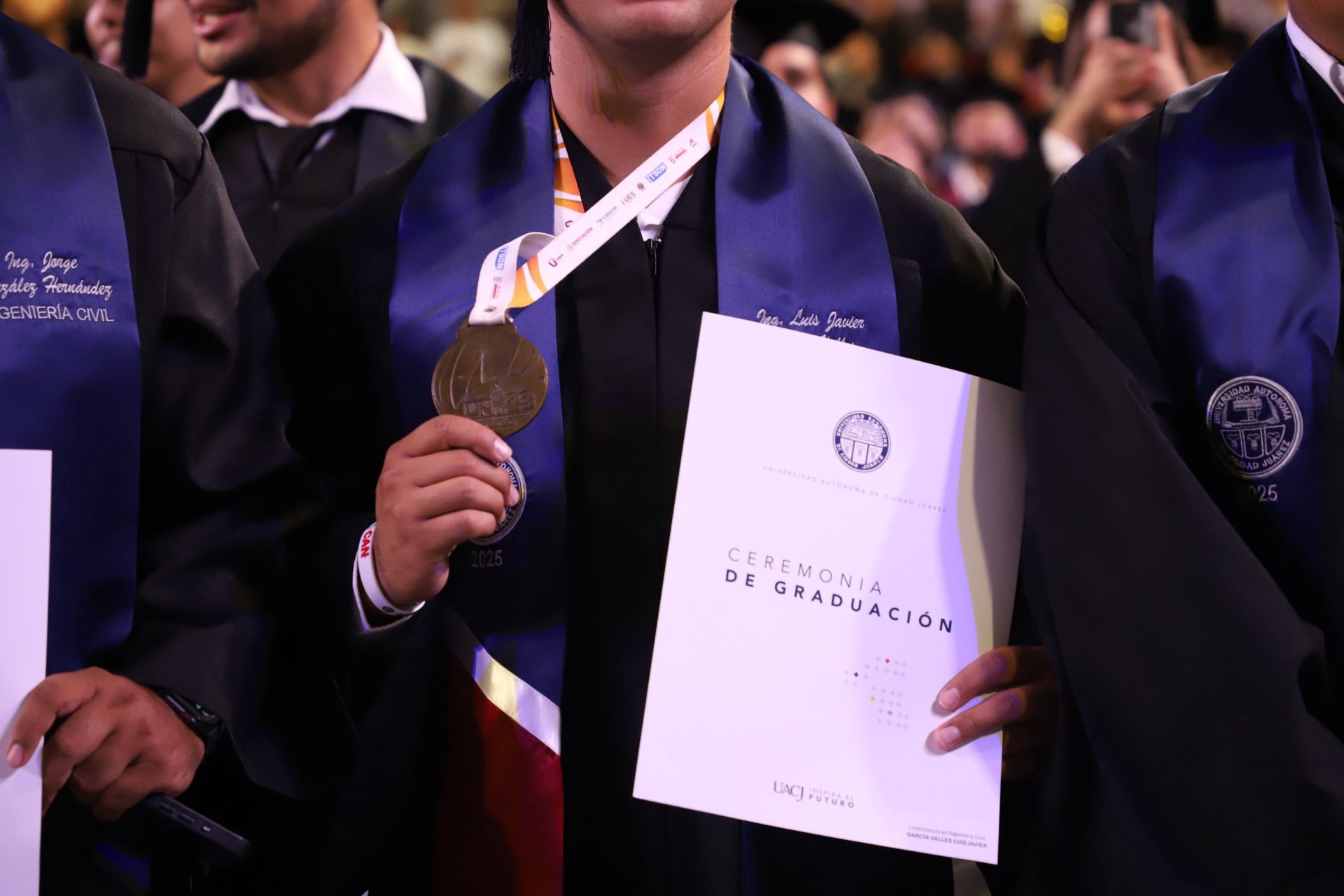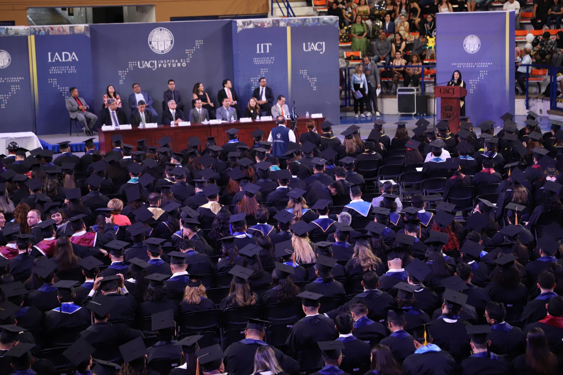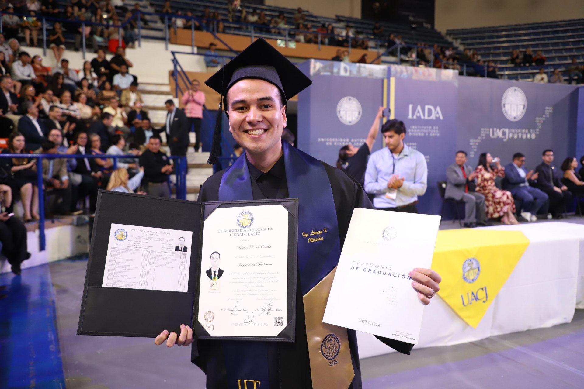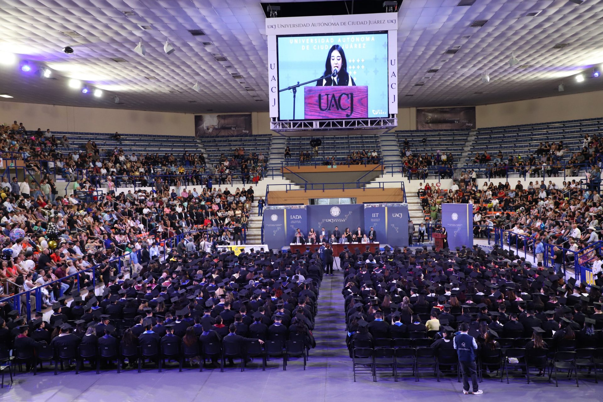 Esta tarde, el Instituto de Arquitectura, Diseño y Arte (IADA) y el Instituto de Ingeniería y Tecnología (IIT) de la Universidad Autónoma de Ciudad Juárez (UACJ) entregaron a la comunidad universitaria un motivo más de orgullo: la graduación de 518 estudiantes del semestre Enero-Junio y Junio-Julio de 2025, en un evento que reconoció años de disciplina, constancia y amor por el conocimiento.