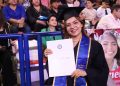 María del Carmen Palacios Adame fue la única en graduarse este día de la Especialidad en Educación Musical. Del IADA fueron 316 y 202 del IIT, para sumar un total 518 diplomas entregados hoy.