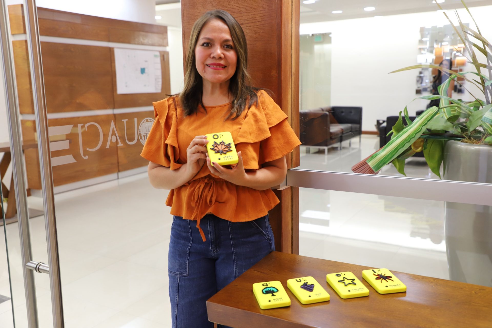 “Cada módulo tiene cuatro canales de aprendizaje: reconocimiento del carácter, la identificación o la relación con el módulo del braille, la figura simbólica que relaciona al entorno, y la auditiva, al describir verbalmente la figura; la finalidad es seguir con la línea para que no nada más se queden las vocales, continuar probablemente con el abecedario, con el silabario, con los números y cualquier campo semántico”, explicó la investigadora.