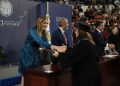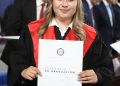 En representación de los egresados, Laura Vega Velázquez, ahora licenciada en Derecho, también dio un mensaje de felicitación a los nuevos profesionistas.