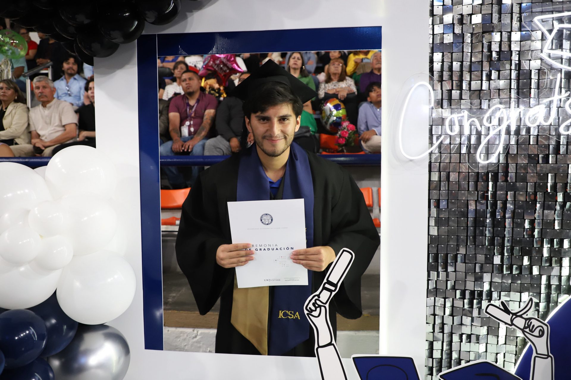 Por su parte, Héctor Manuel Sáenz de la Cruz, eligió nuevamente a esta Universidad para continuar con su preparación académica. Primero, piso el Gimnasio Universitario para celebrar su graduación como licenciado en Producción Musical, y ahora vuelve a la duela, pero ahora como maestro en Gestión de la Información en Entornos Digitales.