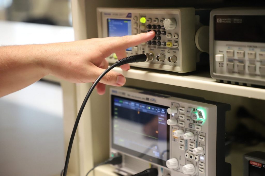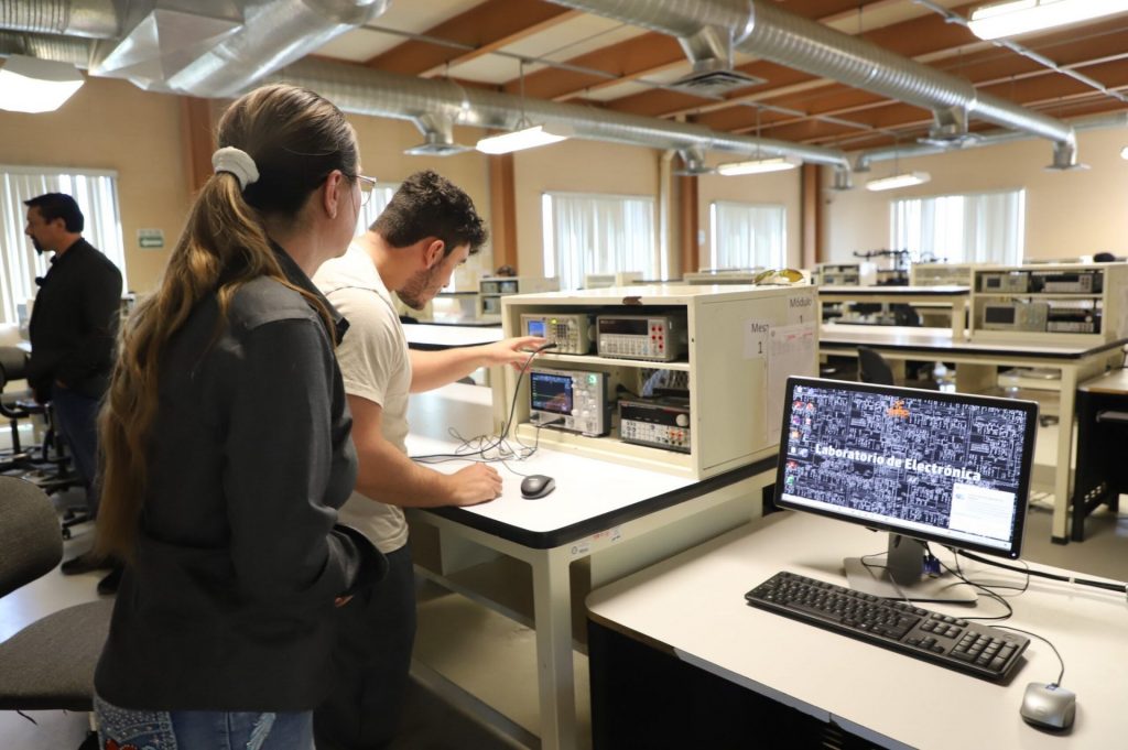 Desde el Laboratorio de Sistemas Electrónicos Inteligentes, Omar Ulises Fernández Guardiola manipula uno de los nuevos osciloscopios.