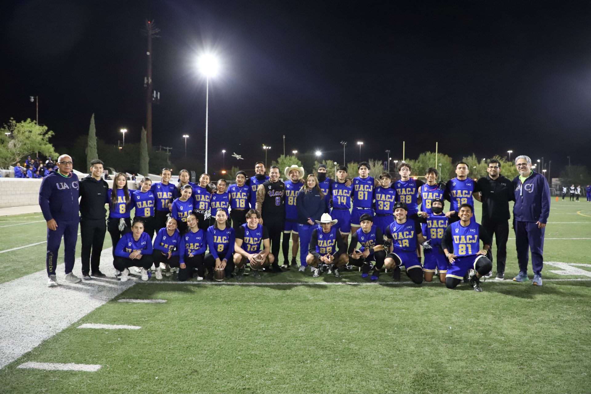 Bajo un cielo que parecía guardar silencio para presenciar la historia, la Universidad Autónoma de Ciudad Juárez (UACJ) encendió esta noche las luces LED de su nuevo campo sintético de futbol americano, en el Complejo Deportivo Universitario. Con un destello que atravesó la oscuridad, comenzó una etapa que promete más horas de entrenamiento, más competencias y más sueños que corren detrás de un balón, bajo un mismo espíritu universitario.