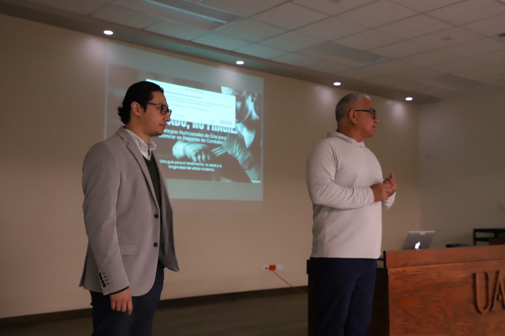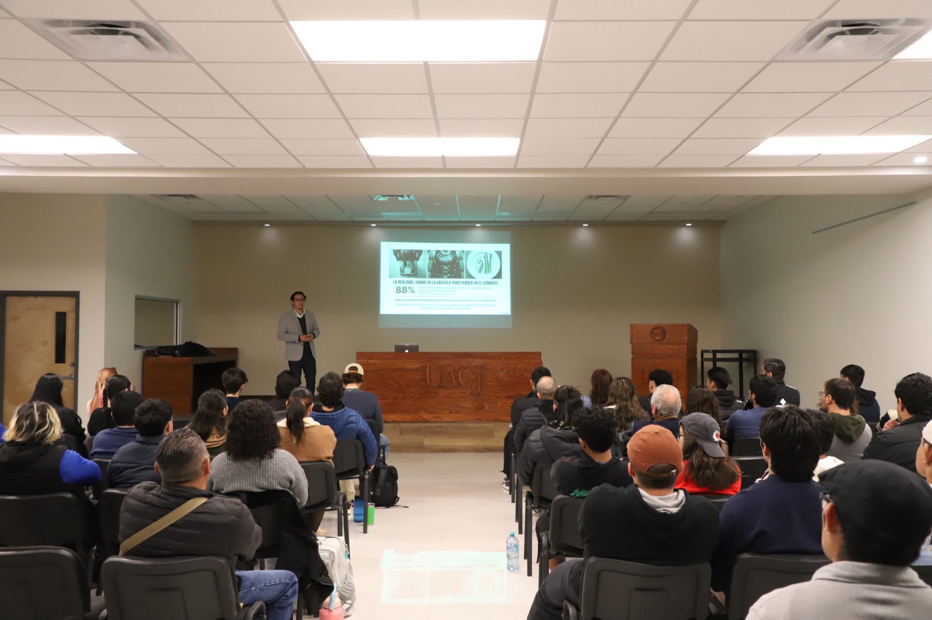 Para fomentar un plan de rendimiento, resistencia y salud integral, la Universidad Autónoma de Ciudad Juárez (UACJ), a través de la Dirección del Deporte, llevó a cabo la conferencia ‘Forjado, No Frágil. Estrategias Nutricionales de Élite para Dominar en Deportes de Combate´, impartida por el doctor Isaac Armando Chávez Guevara, Profesor Investigador de Tiempo Completo (PTC) adscrito en la Facultad de Deportes de la Universidad Autónoma de Baja California (UABC), Campus Ensenada, quien expuso la relevancia de la nutrición como un componente estratégico del alto rendimiento en deportes de combate, donde el desgaste físico, la fuerza y la recuperación juegan un papel determinante.