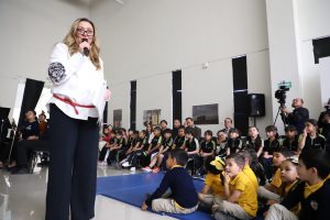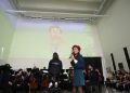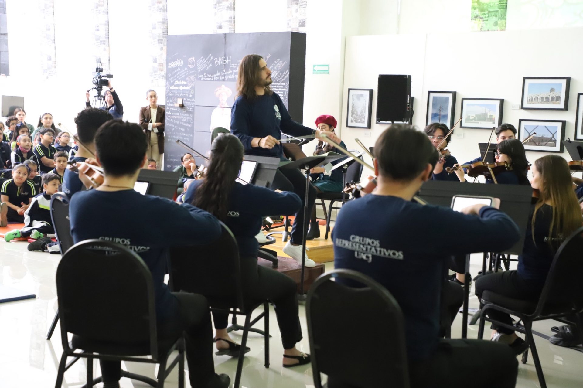 “Hoy es un doble festejo para la UACJ, es un día de doble orgullo y reconocimiento porque ustedes van a poder escuchar a nuestra maravillosa orquesta y nosotros los vamos a escuchar a ustedes emocionarse, sonreír. Nos da mucho gusto poder compartir estos momentos con todos ustedes; maestros, muchas gracias por acceder a esta visita, gracias por traer a los niños para que puedan divertirse, disfrutar y pasar su día al lado de nuestros músicos”.