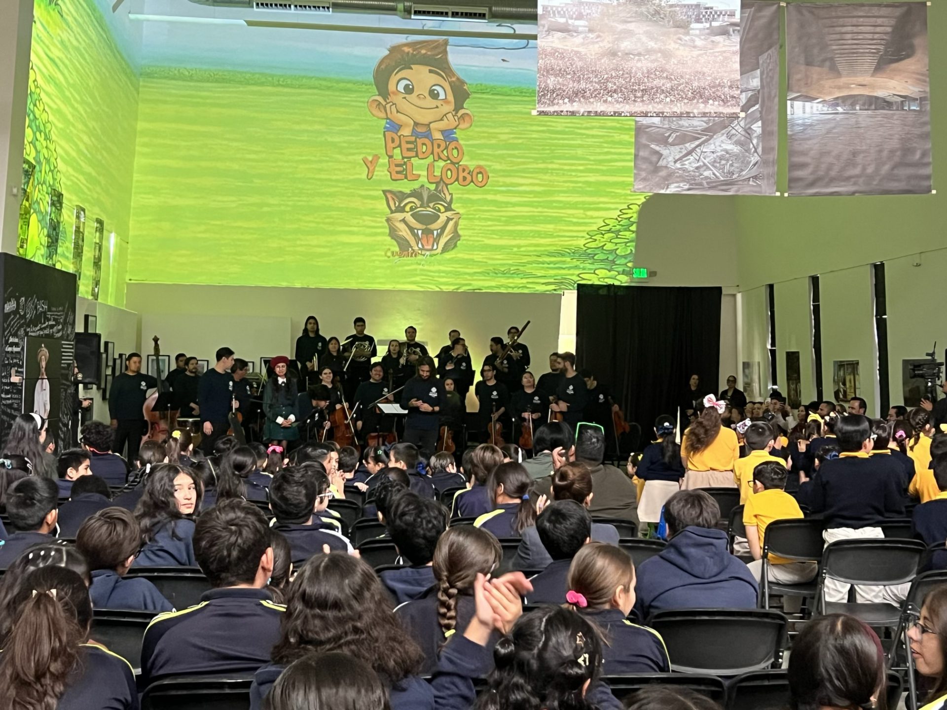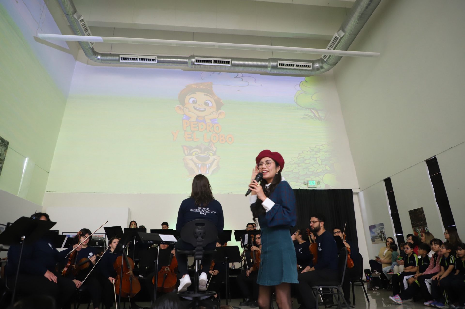 Pedro y el lobo es un cuento sinfónico diferente; contrario a las presentaciones tradicionales, es un cuento que no se lee, sino que se escucha con música. Para ello, con atención e intriga, los niños y niñas descubrieron los sonidos que integran las cuatro familias que conforman la Orquesta Sinfónica: cuerdas, maderas, metales y percusiones.