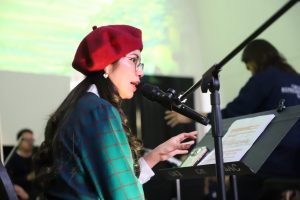 La maestra Guadalupe Gaytán Aguirre, Secretaria Académica de la UACJ, dio unas palabras de bienvenida a nombre del doctor Daniel Alberto Constandse Cortez: