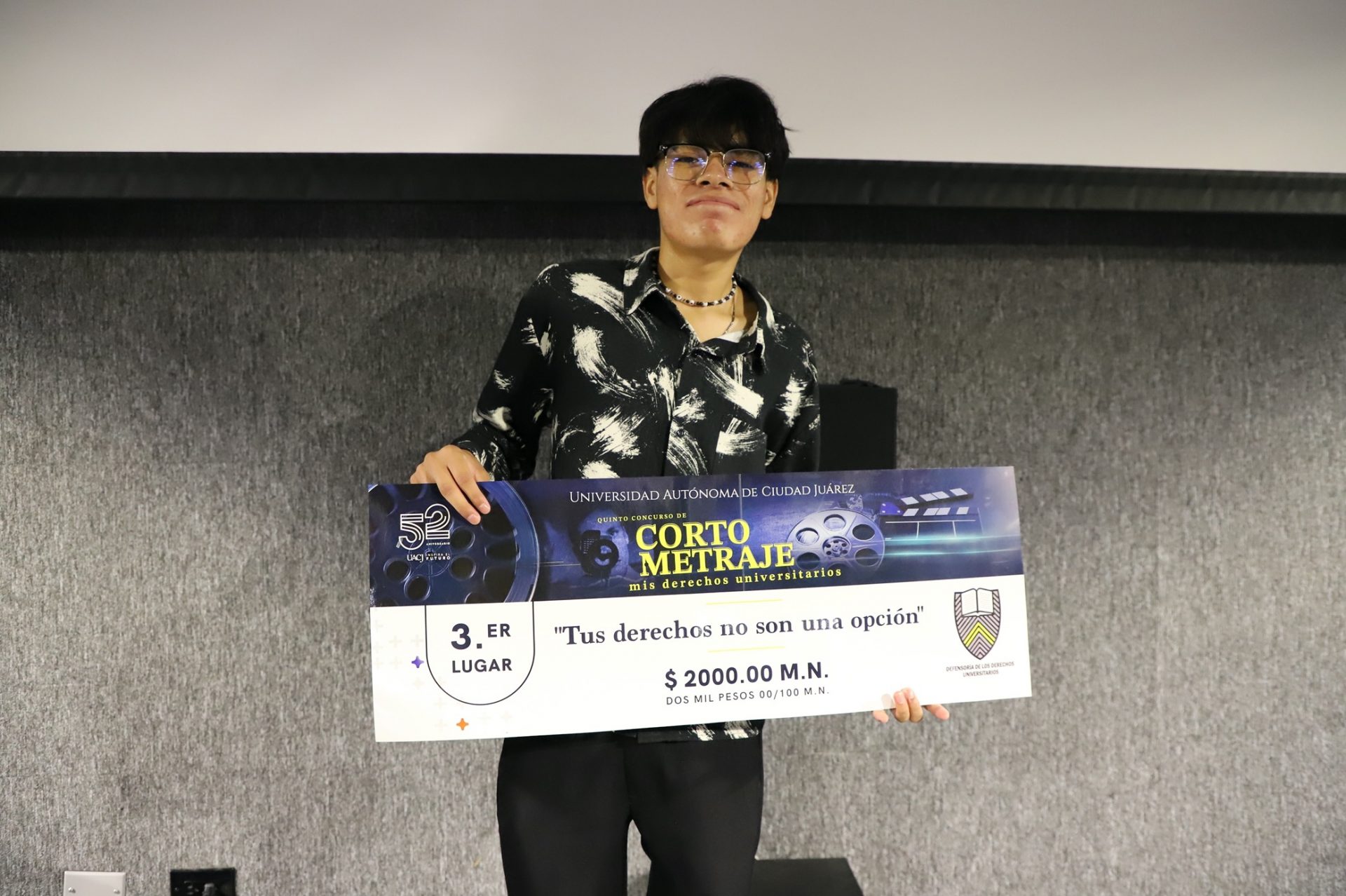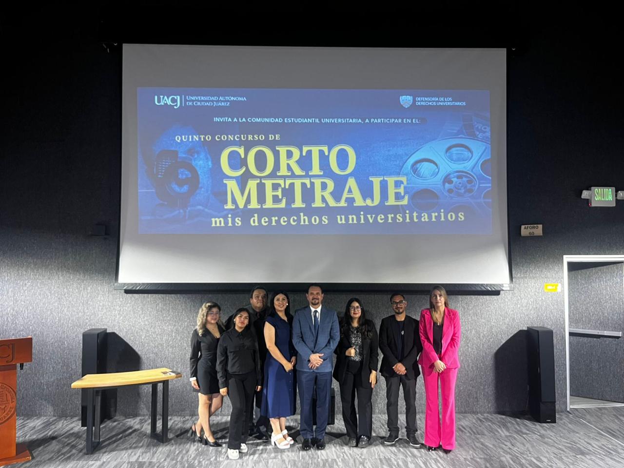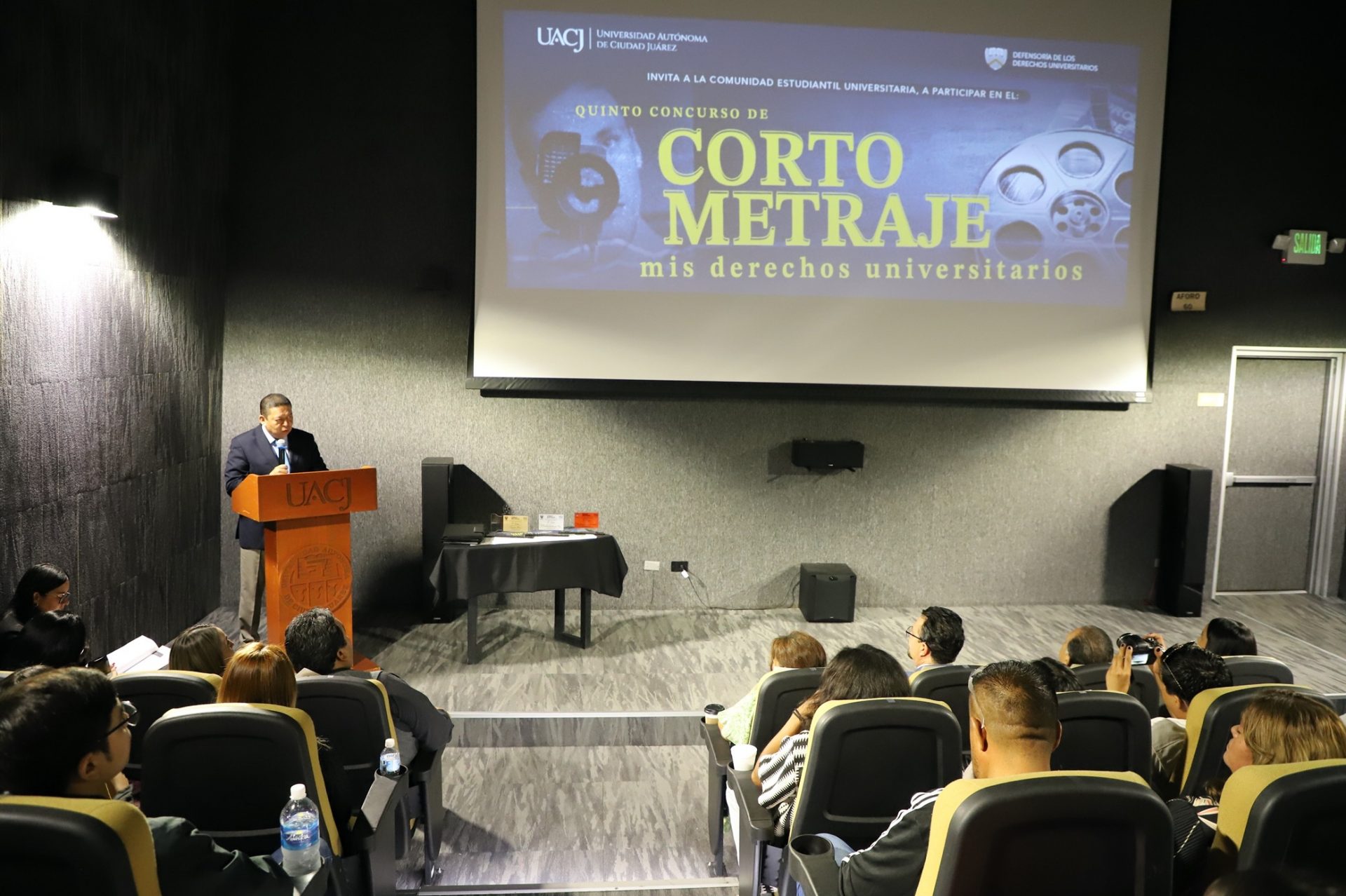 La sala Arturo Ripstein fue el escenario donde estudiantes de pregrado de la Universidad Autónoma de Ciudad Juárez (UACJ) se reunieron para la premiación del Quinto Concurso de Cortometraje Mis Derechos Universitarios. La convocatoria fue realizada por la Defensoría de los Derechos Universitarios en marzo de 2025, con el propósito de fomentar la creatividad, impulsar la participación estudiantil y dar a conocer entre la comunidad universitaria este servicio