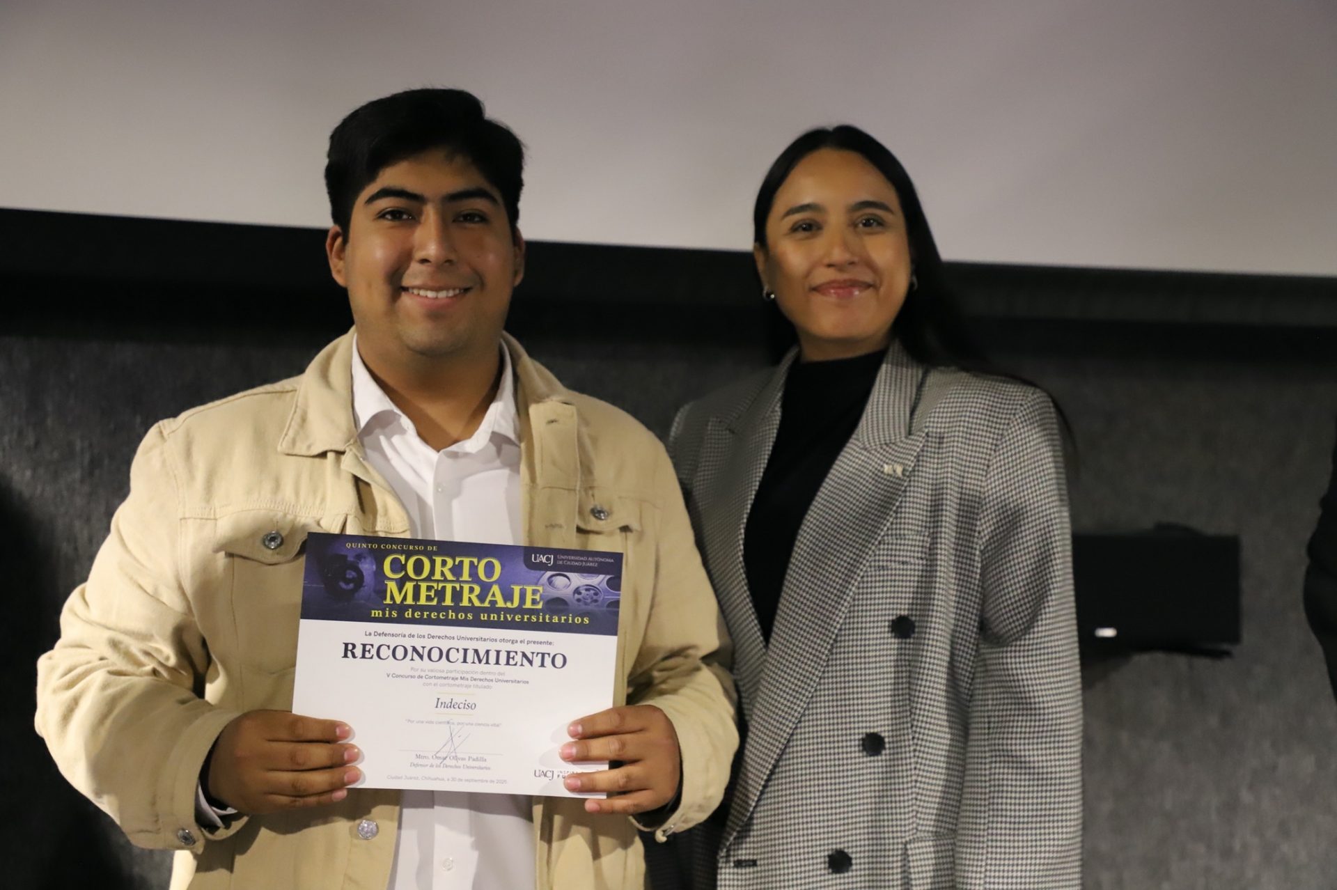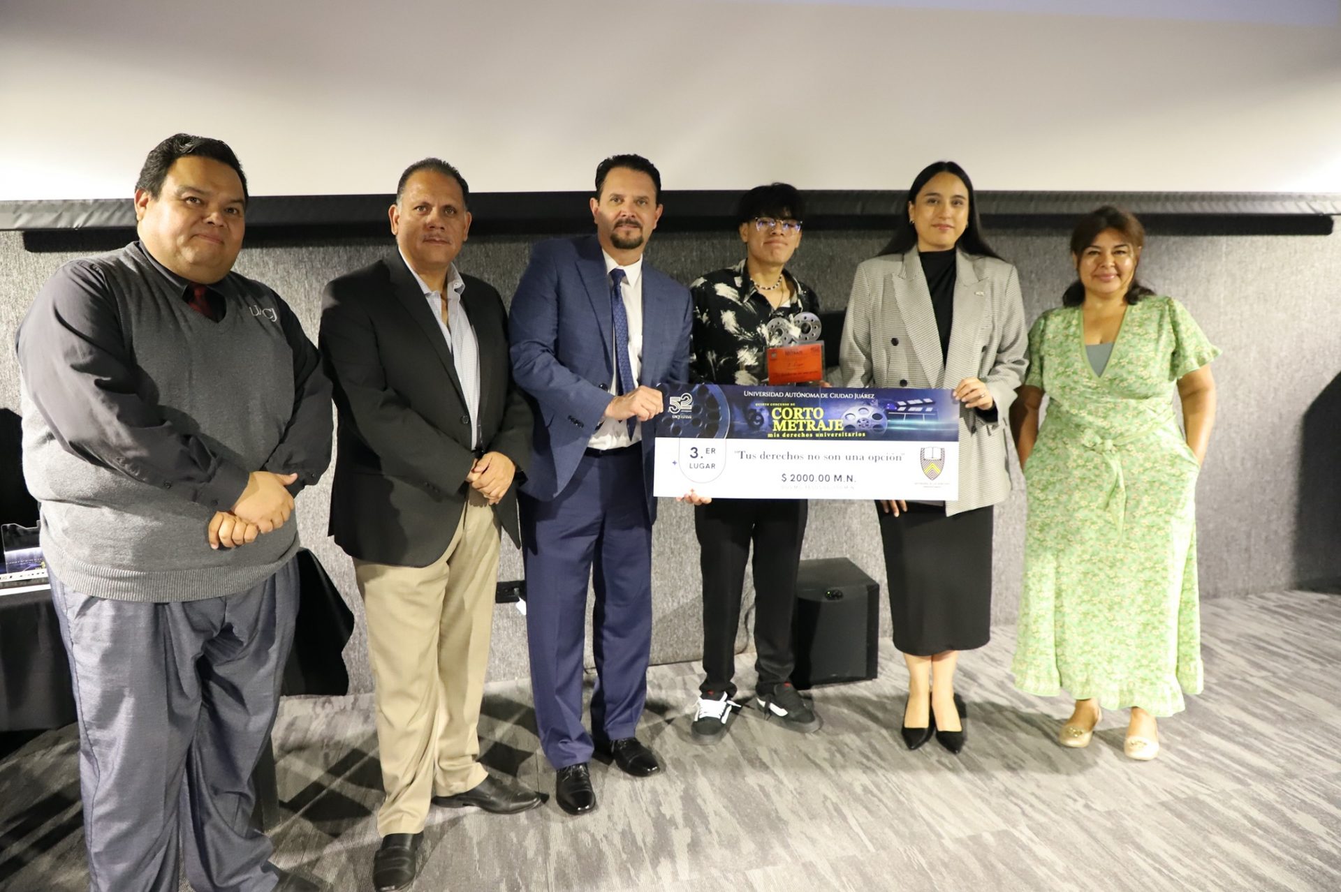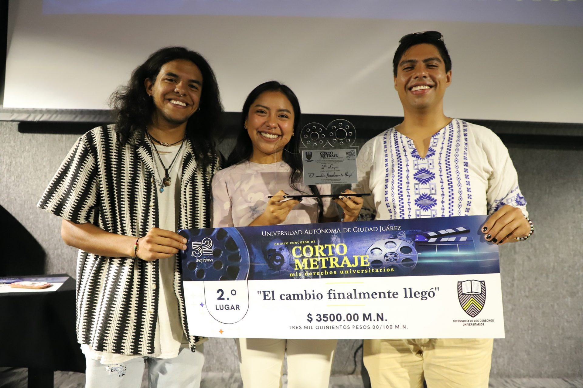 La sala Arturo Ripstein fue el escenario donde estudiantes de pregrado de la Universidad Autónoma de Ciudad Juárez (UACJ) se reunieron para la premiación del Quinto Concurso de Cortometraje Mis Derechos Universitarios. La convocatoria fue realizada por la Defensoría de los Derechos Universitarios en marzo de 2025, con el propósito de fomentar la creatividad, impulsar la participación estudiantil y dar a conocer entre la comunidad universitaria este servicio