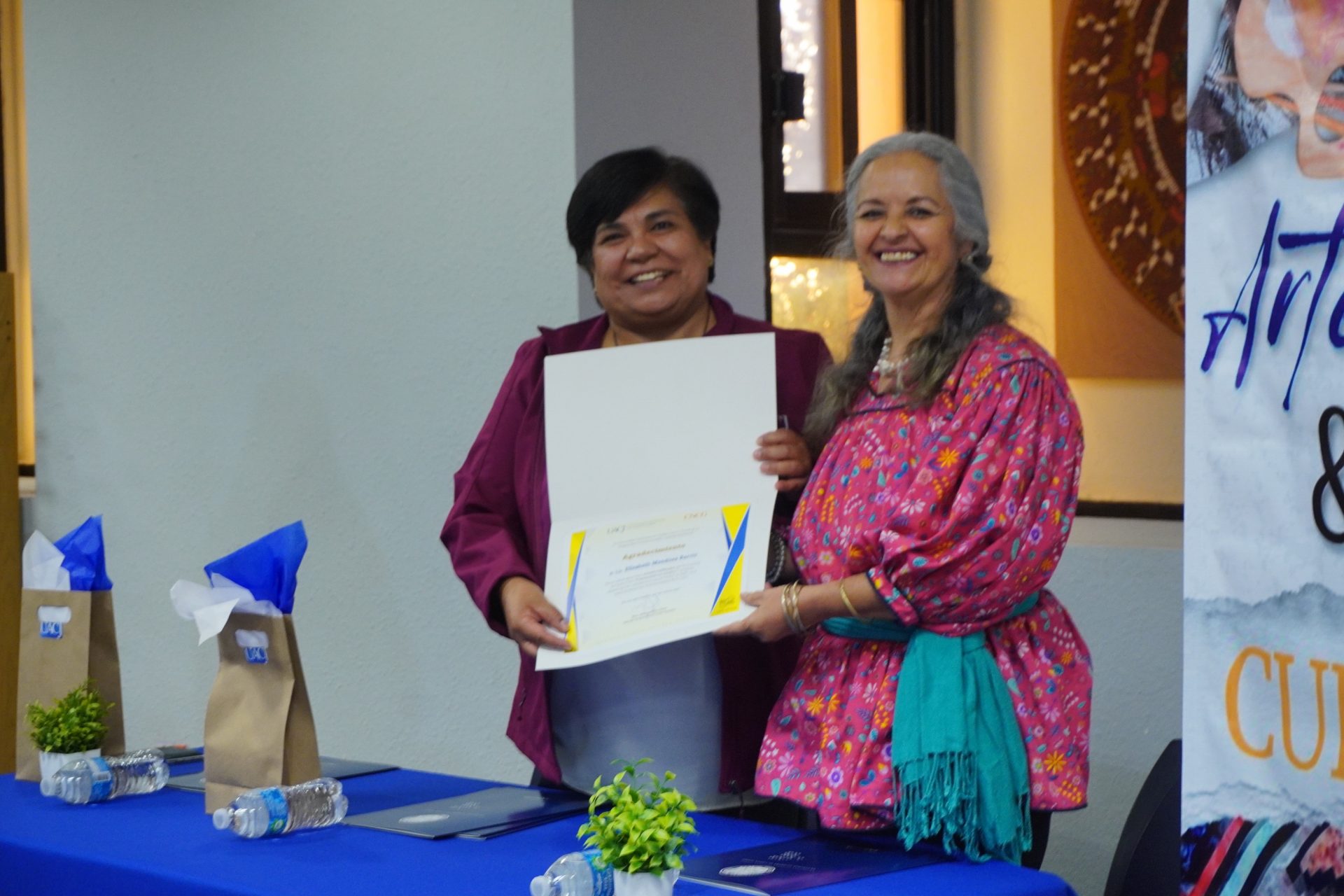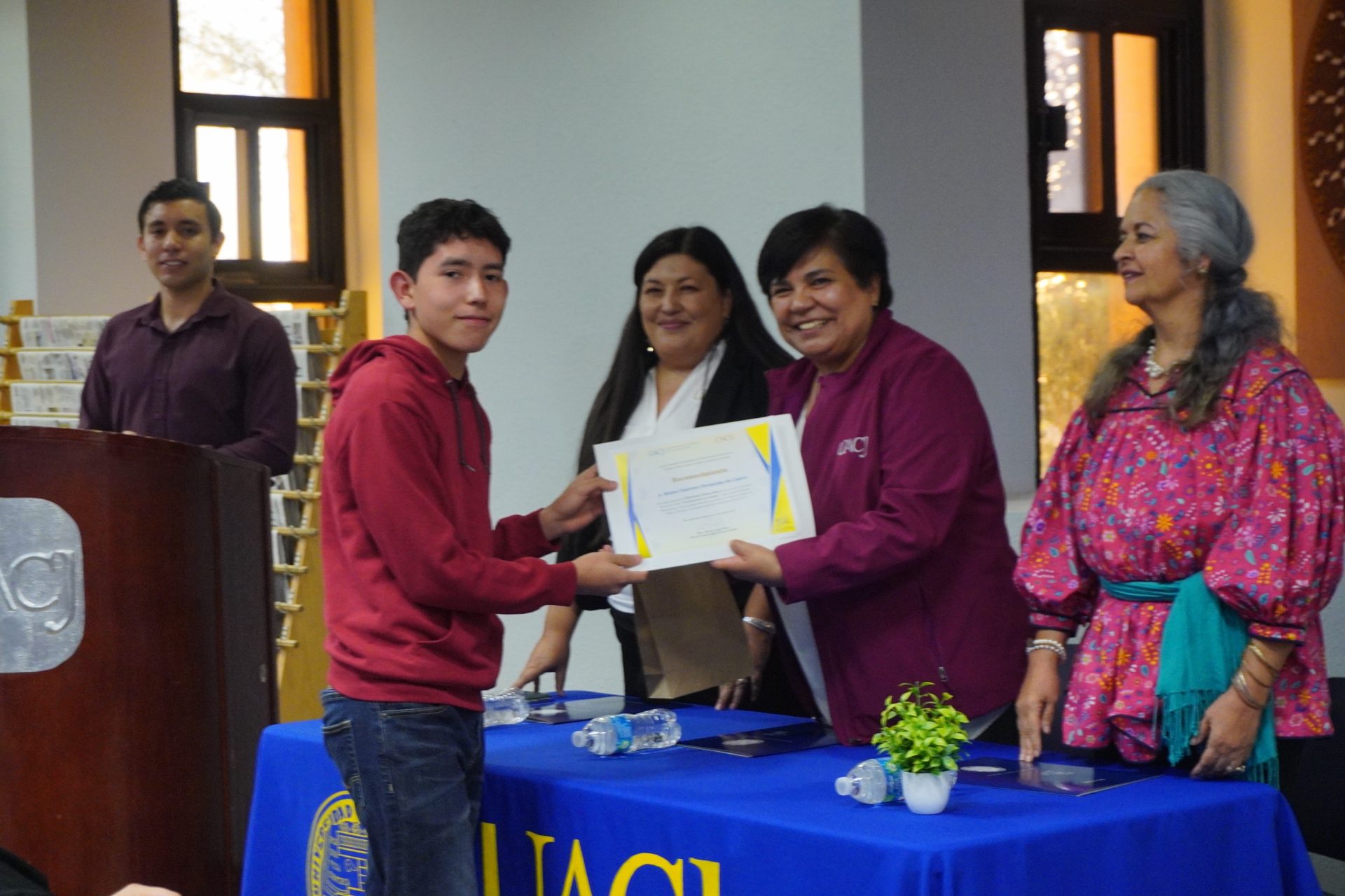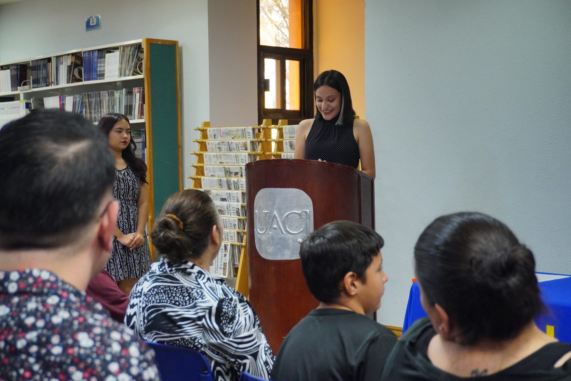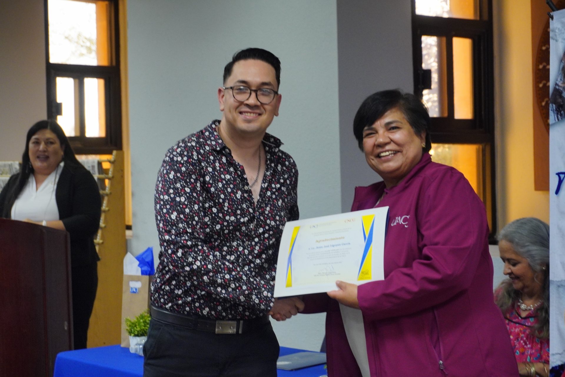 La premiación se llevó a cabo la tarde del 28 de octubre en una emotiva ceremonia realizada dentro de la biblioteca del CNCG, cuyo presídium estuvo integrado por la Mtra. Gabriela Muñoz García, coordinadora del programa de trabajo social, quien representó a la jefa del campus, la Mtra. Miriam Galaz Piñón; la Lic. Desireé Delgado Sujo secretaria del Comité Universitario Pro Arte y Cultura (CUPAC) y la Lic. Elizabeth Mendoza Barrio, integrante del Jurado Calificador.