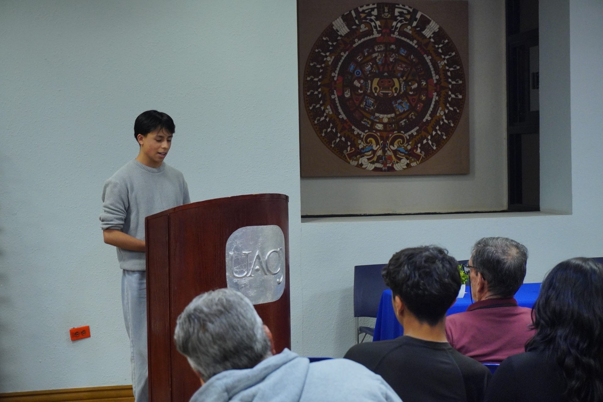 El Jurado Calificador también concedió dos menciones honoríficas, las cuales correspondieron a los cuentos escritos por los jóvenes Mateo Guerrero Fernández de Castro, de la Academia Juárez y Camila Flores, estudiante de la licenciatura en psicología de la UACJ.