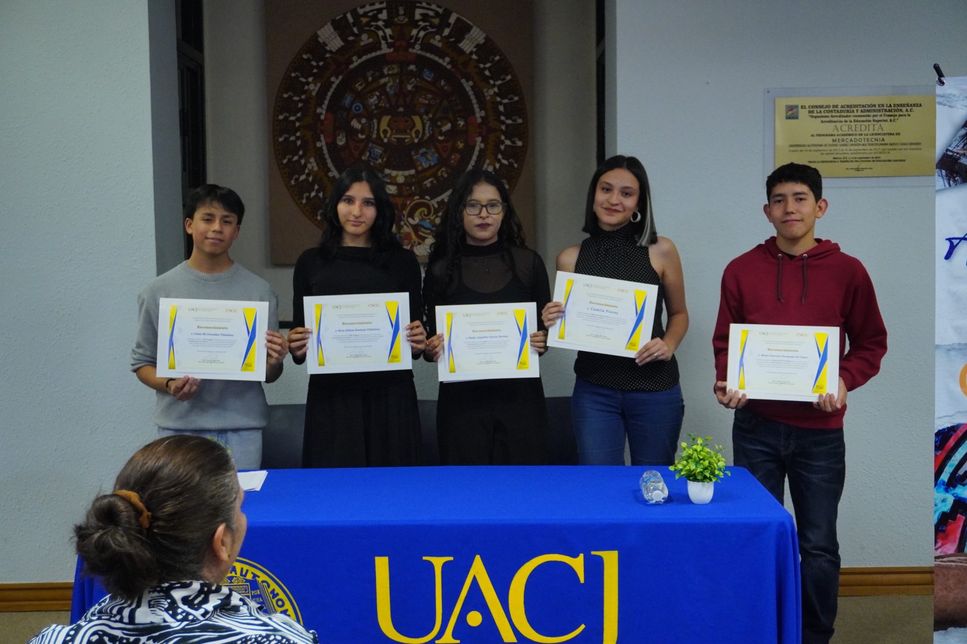 El segundo lugar fue para Nora Allison Rentería Villalobos, alumna del Colegio Nacional Cumbres, con un cuento titulado “Las nubes de Anhelí”, mientras que César Elí González Villalobos, alumno de la UACJ en la licenciatura en mercadotecnia, obtuvo el tercer lugar por su historia “El visitante”.