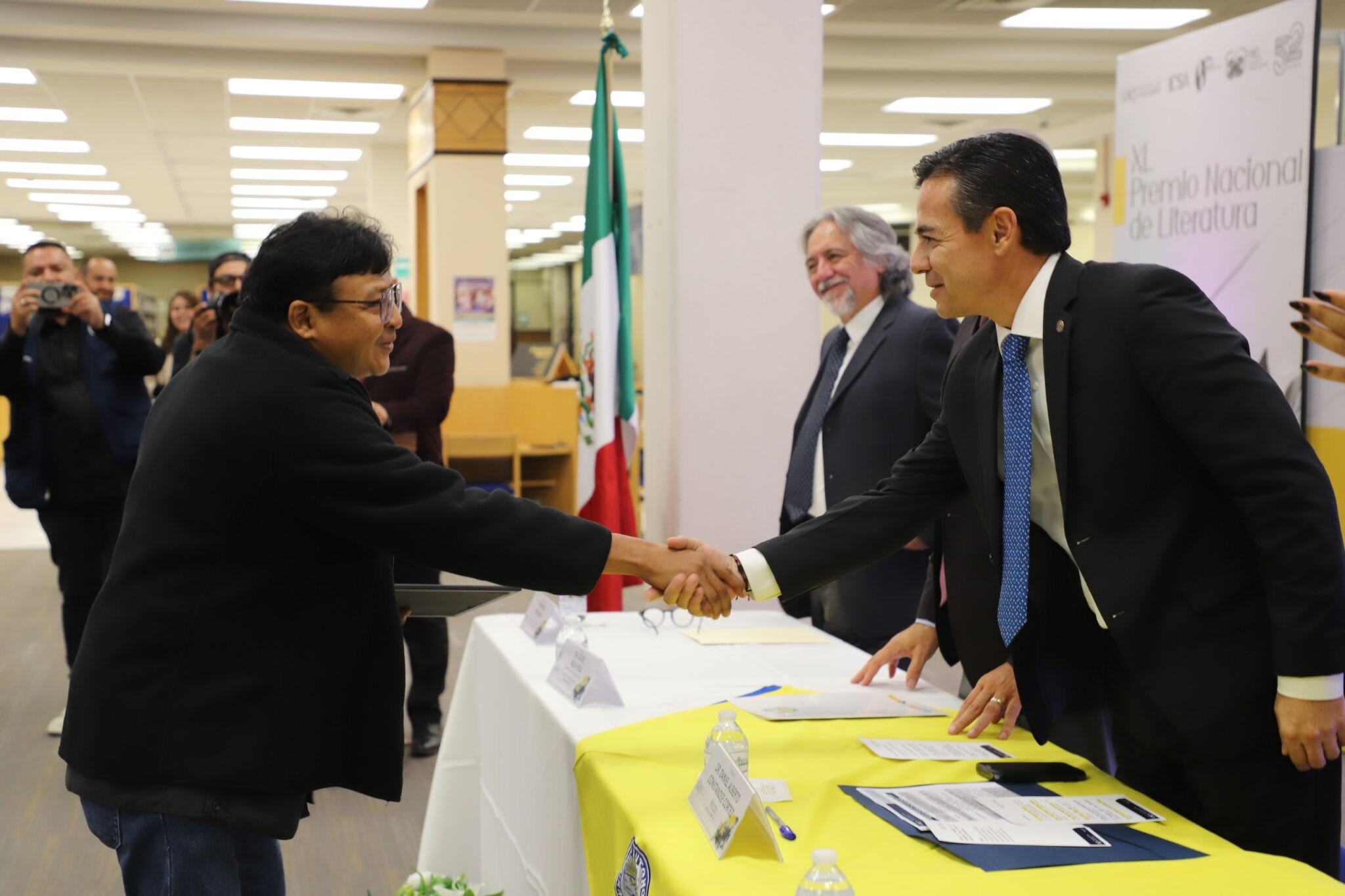 El acto tuvo lugar en el Vestíbulo de la Biblioteca Central “Carlos Montemayor”, del Instituto de Ciencias Sociales y Administración (ICSA), donde se congregaron autoridades universitarias, miembros de la comunidad académica y público en general para conocer y aplaudir al galardonado: Ivi May Dzib (Yucatán, 1980).
