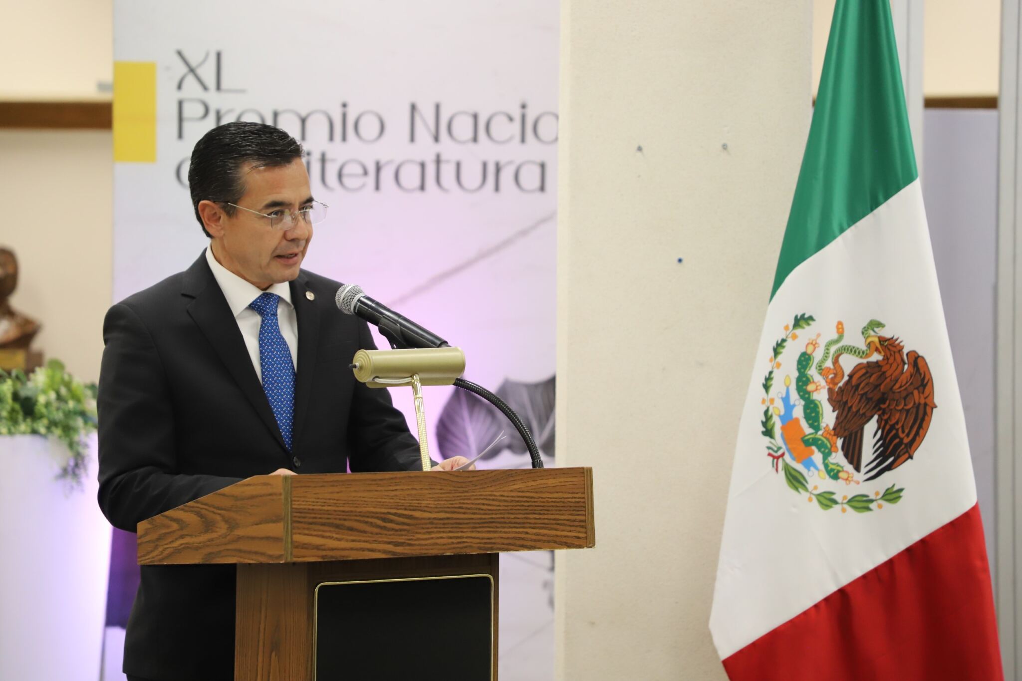 El Dr. Ricardo León García, coordinador del XL Premio Nacional de Literatura José Fuentes Mares, destacó durante la ceremonia que esta edición representa “cuatro décadas de diálogo entre la literatura mexicana y la sociedad”, subrayando la relevancia de este galardón como plataforma para nuevas voces y consagrados autores.